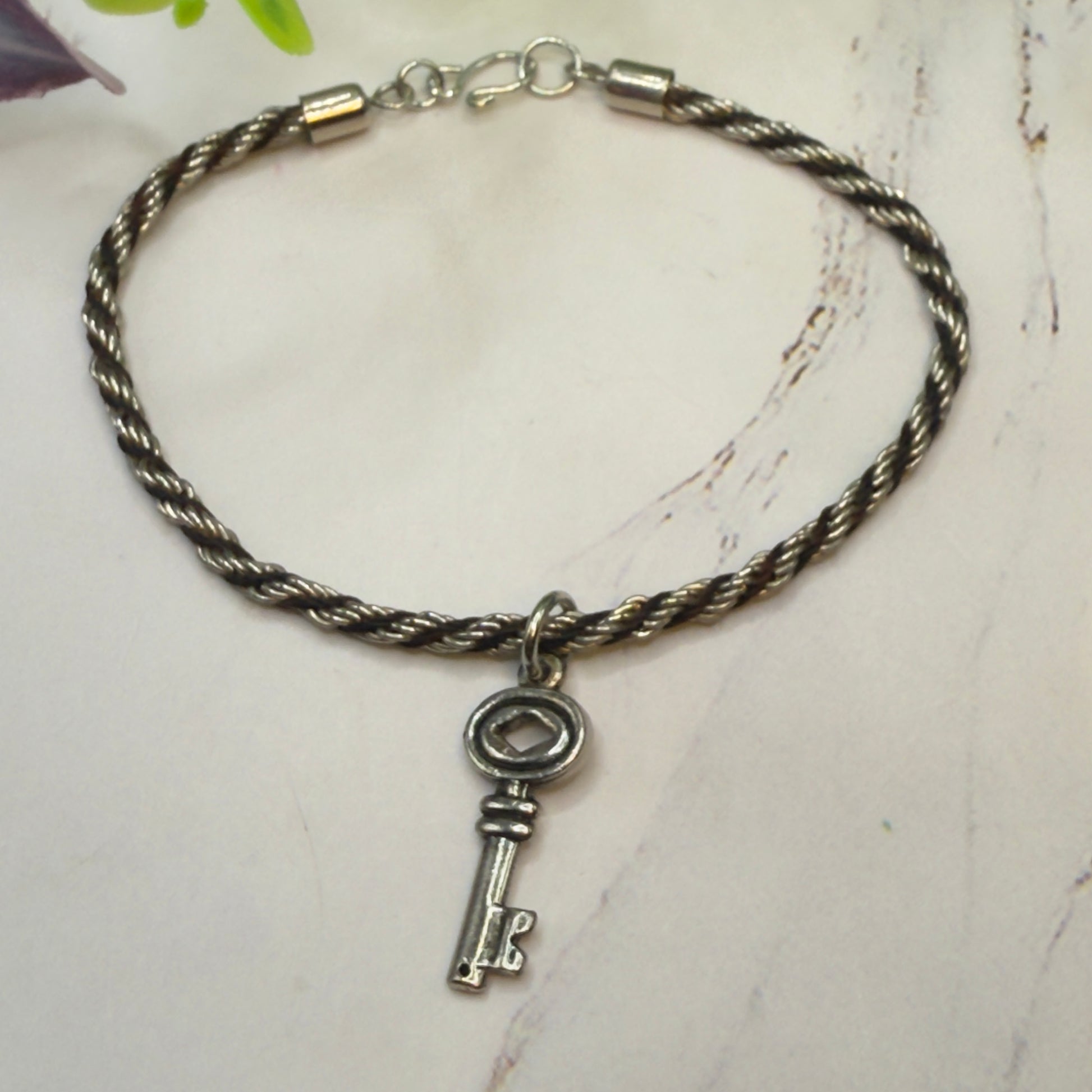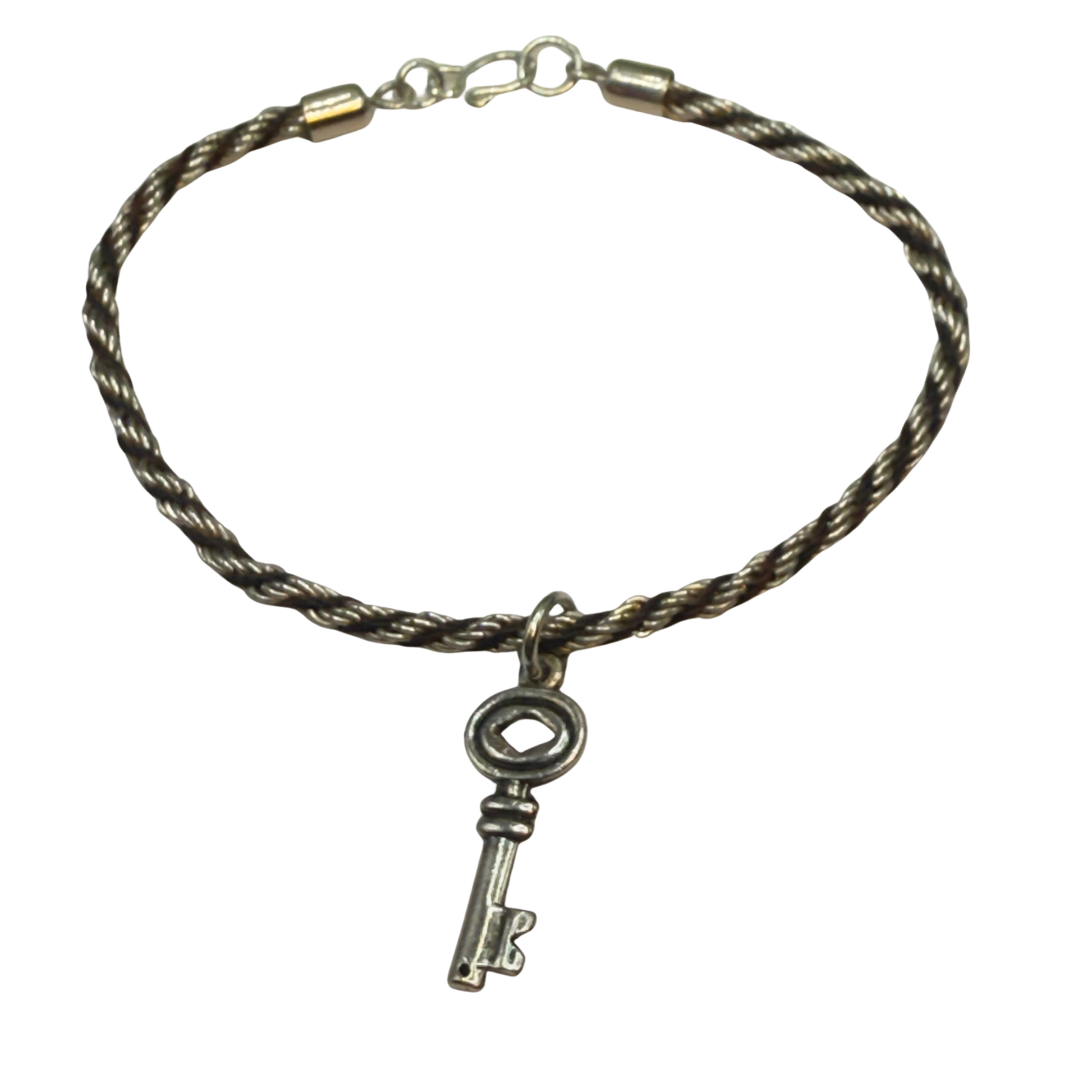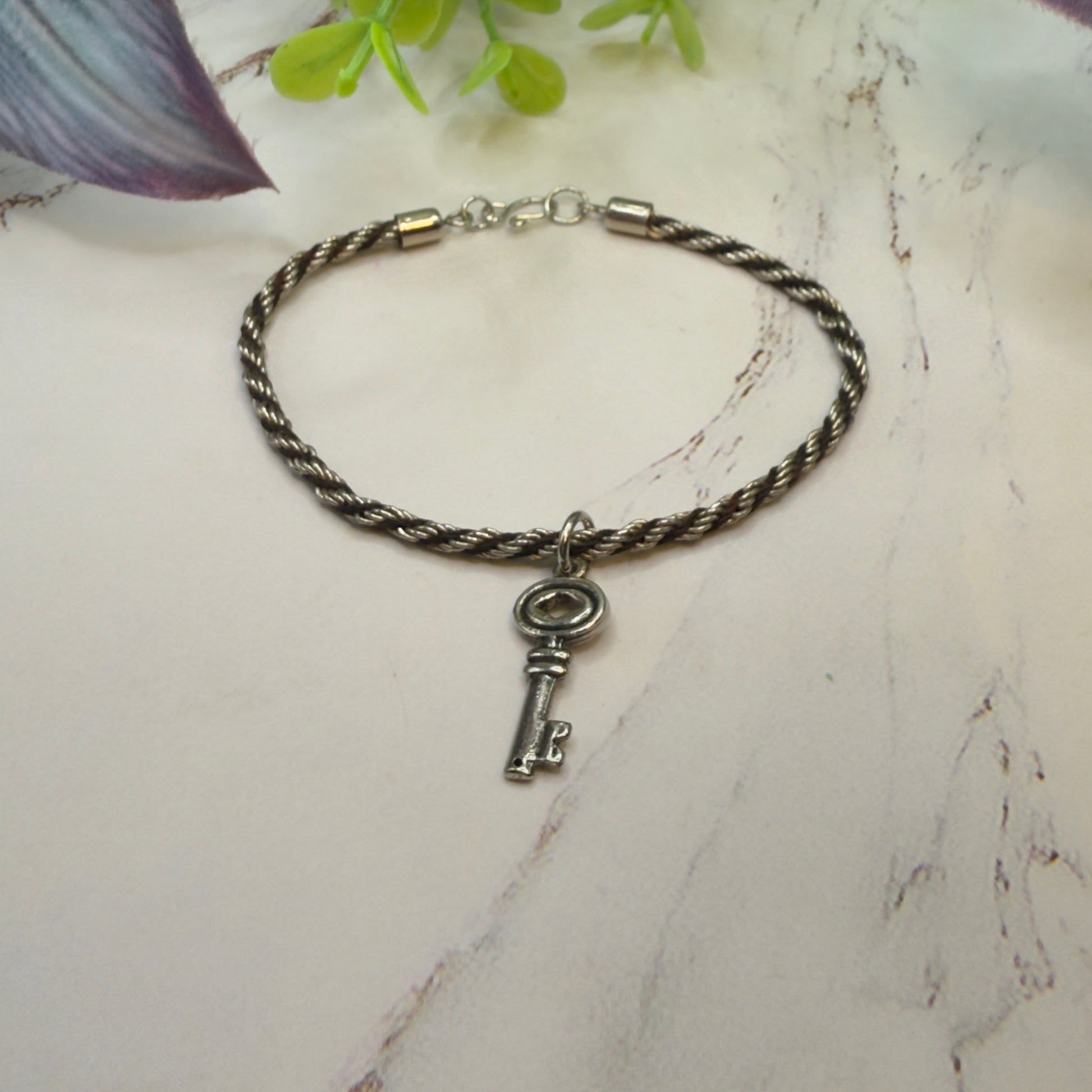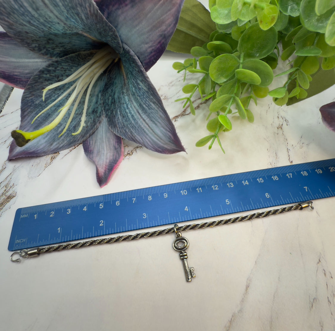 Black Silver Rope Chain Key Charm Doll Necklace. Necklace measures 7-1/8 inches long.