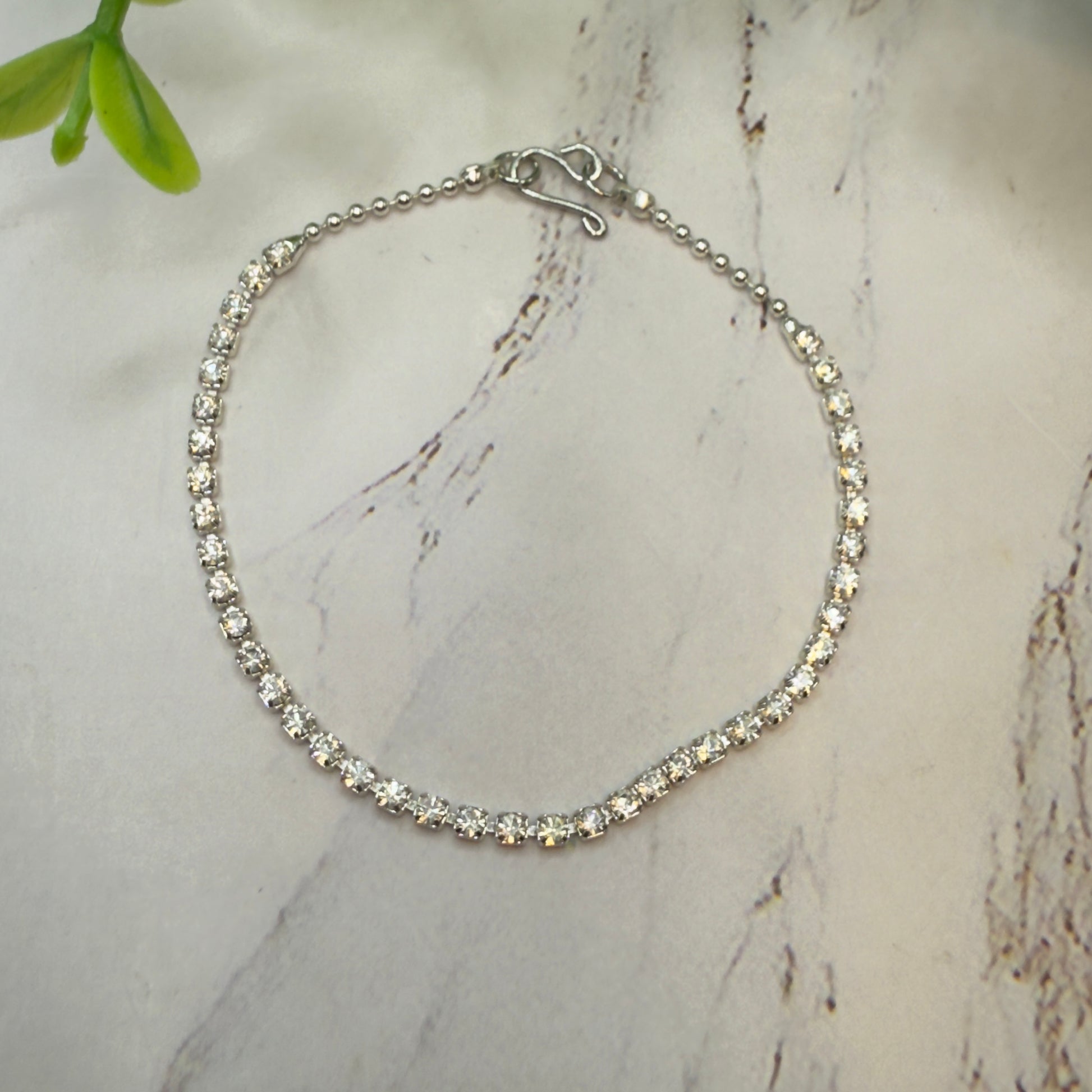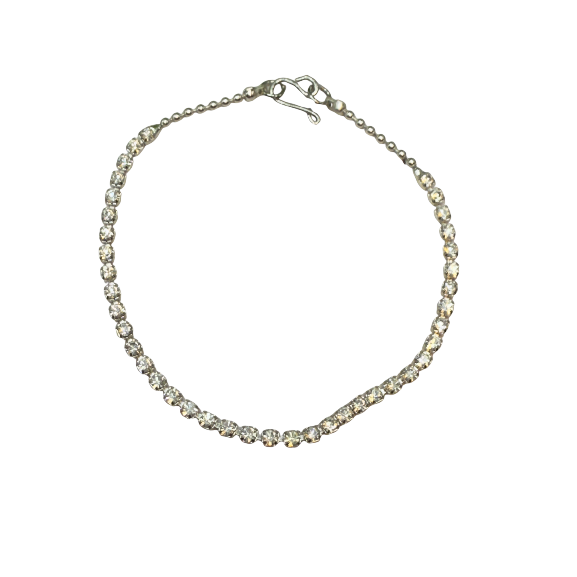 Clear Rhinestone Cup Chain Doll Necklace. The necklace measures 6.25 inches in length.