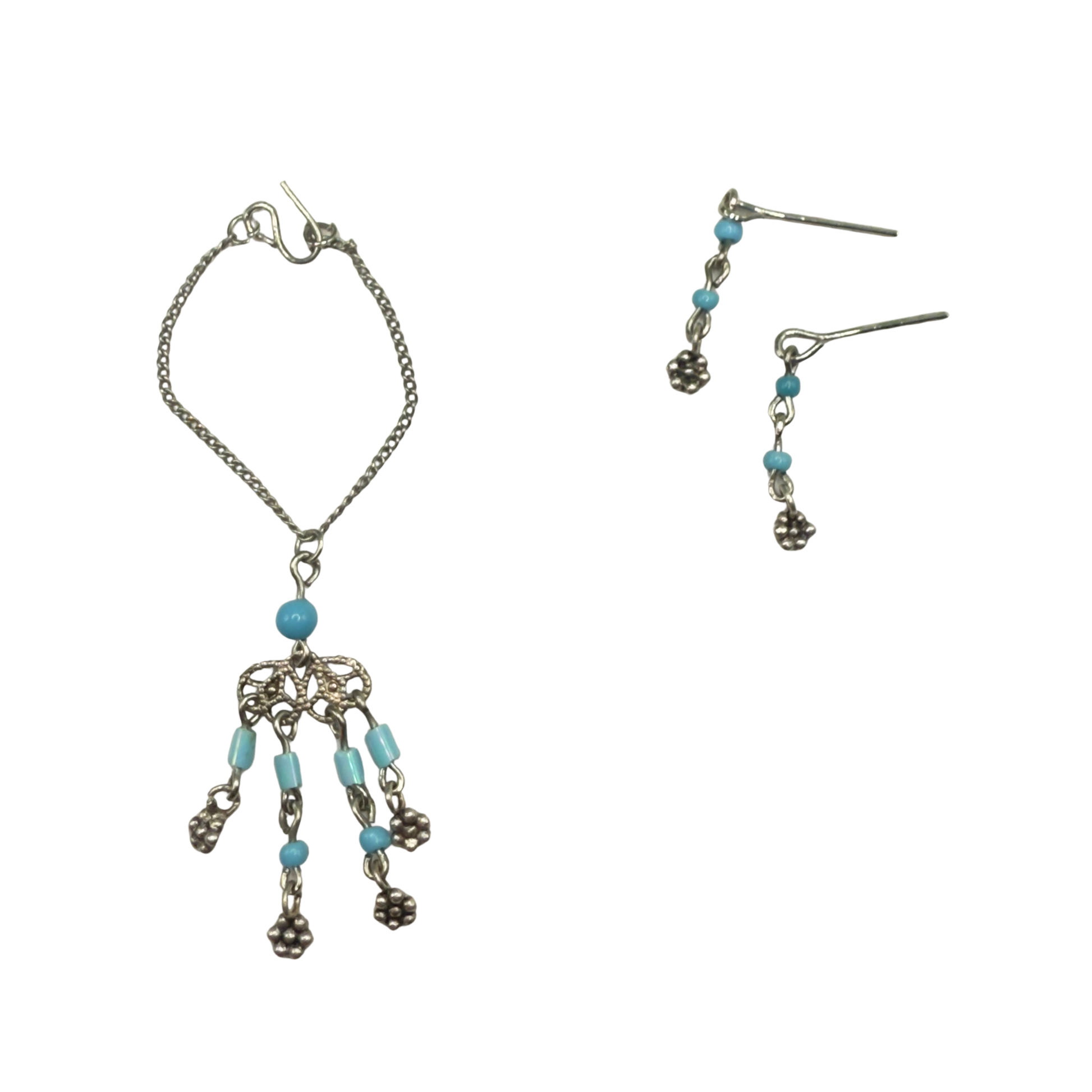 Turquoise Light Blue Accent Dangle Doll Necklace & Earrings Set