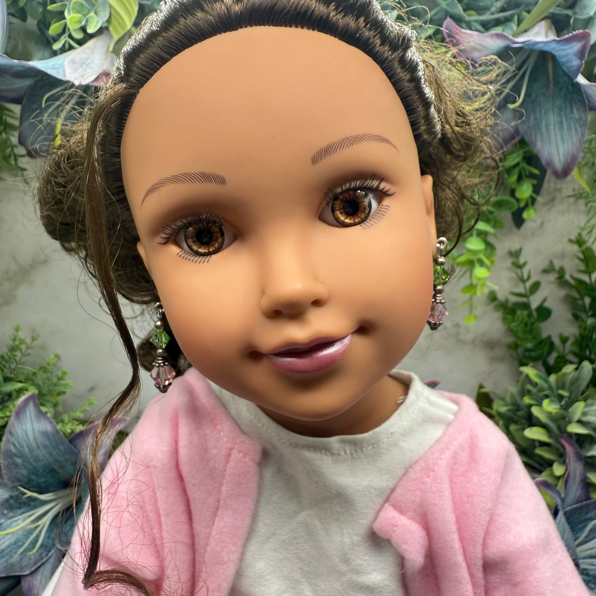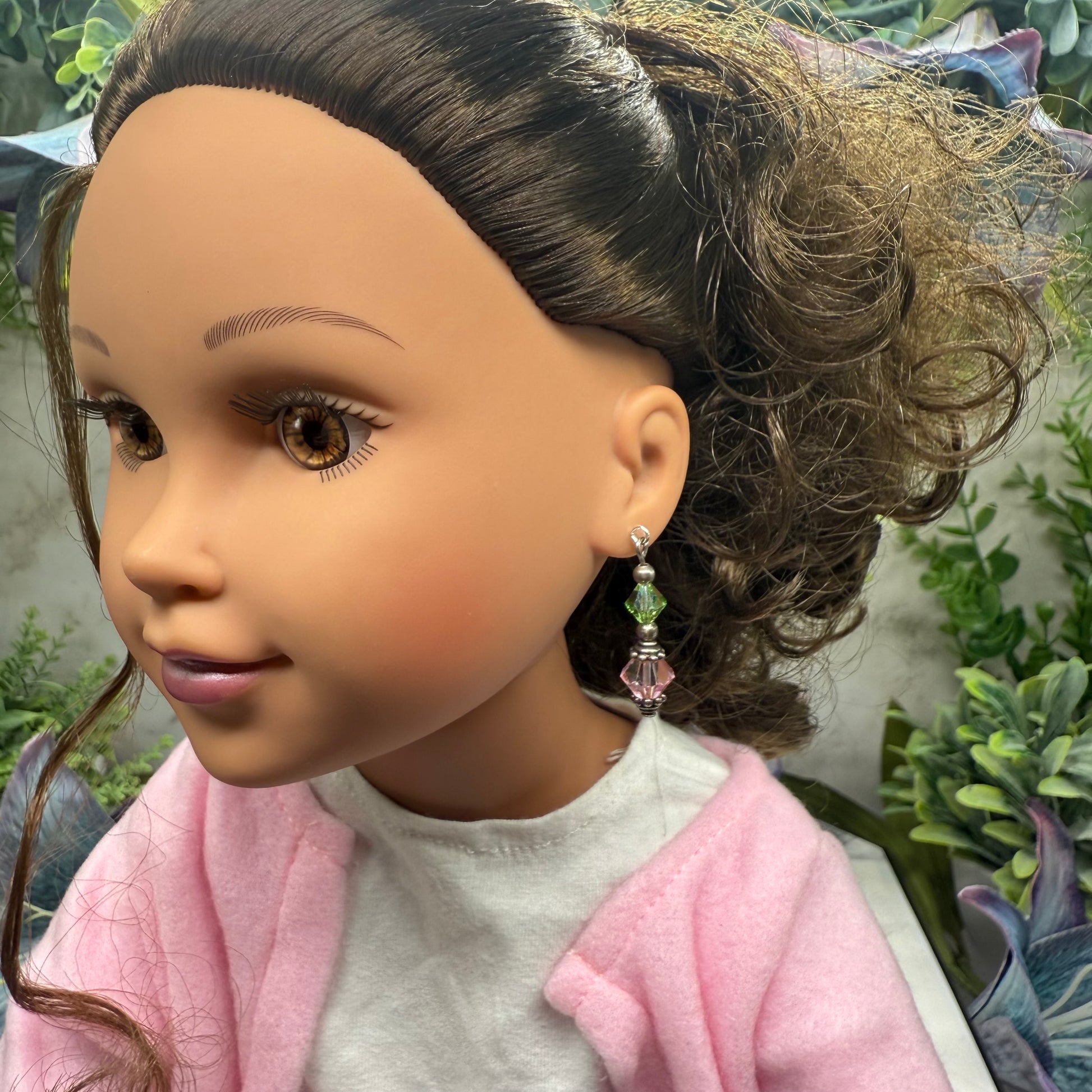 Light Green Pink Glass Crystal Dangle Doll Earrings • 18 Inch Fashion Doll Jewelry