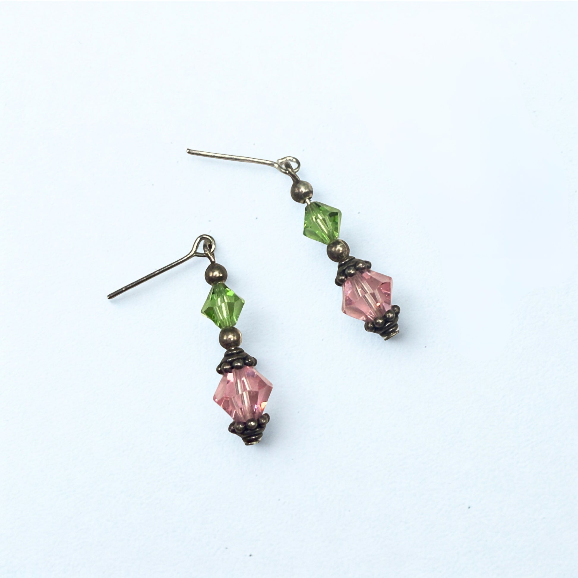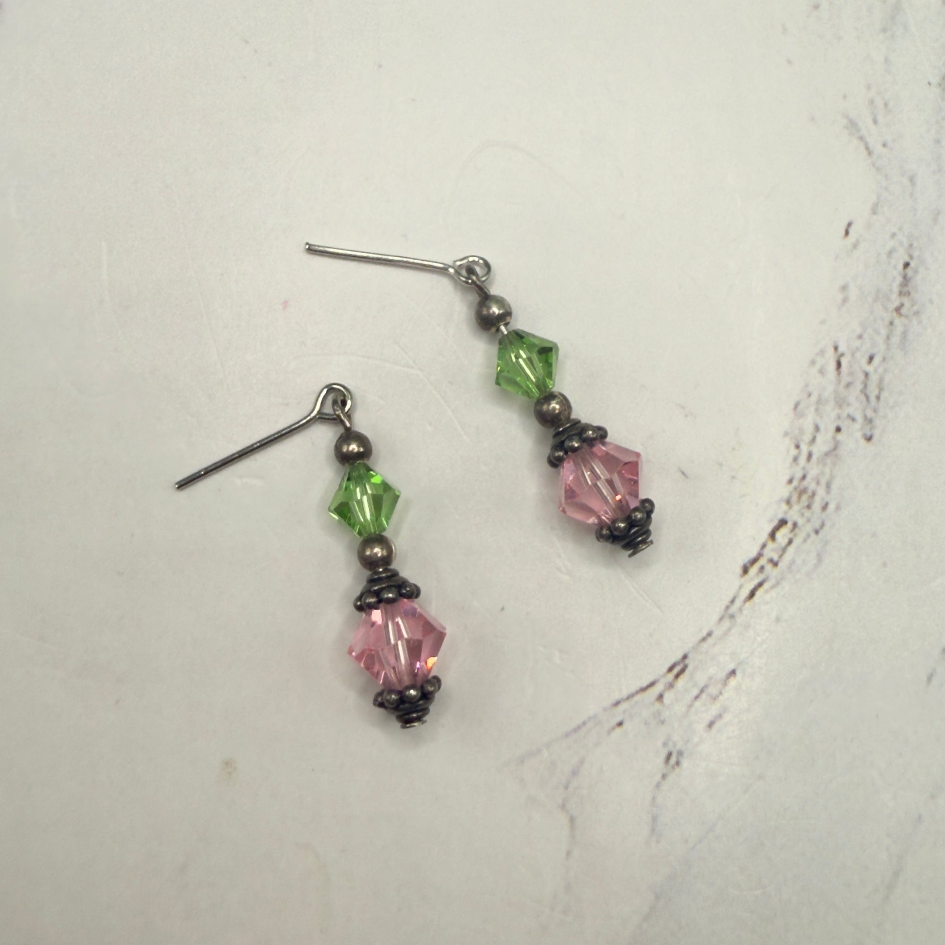 Light Green Pink Glass Crystal Dangle Doll Earrings