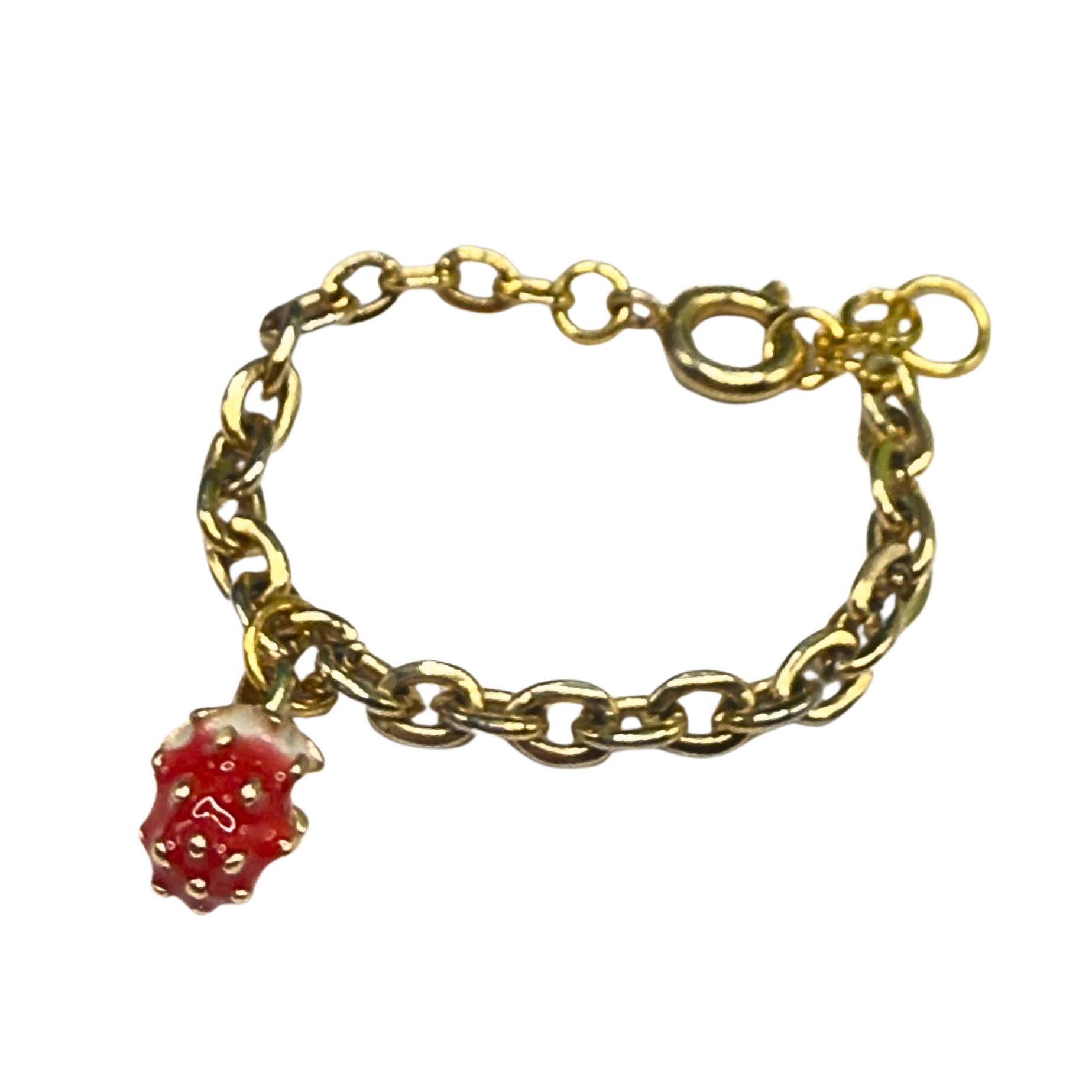 Strawberry Charm Gold Chain Doll Bracelet • 18 Inch Fashion Doll Jewelry