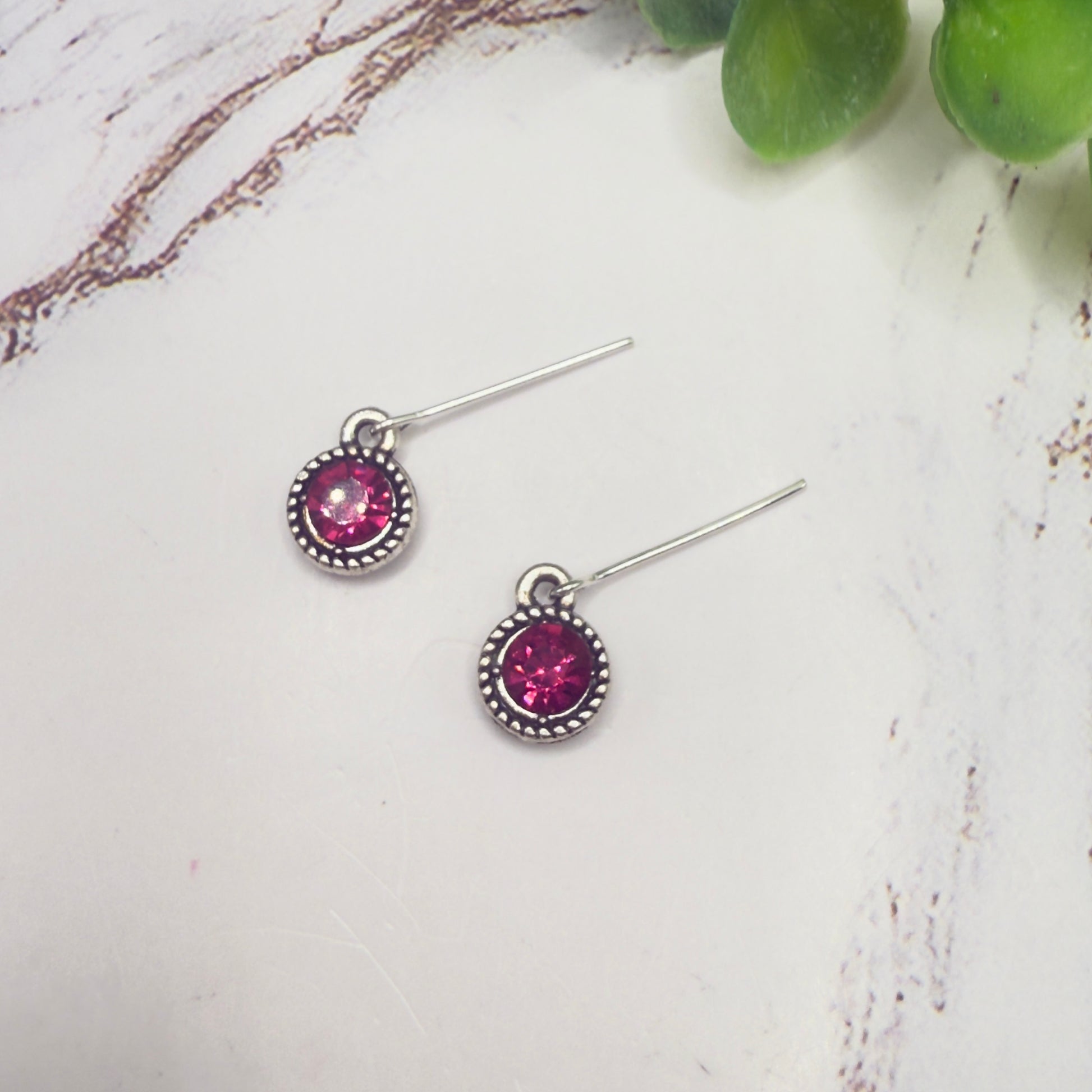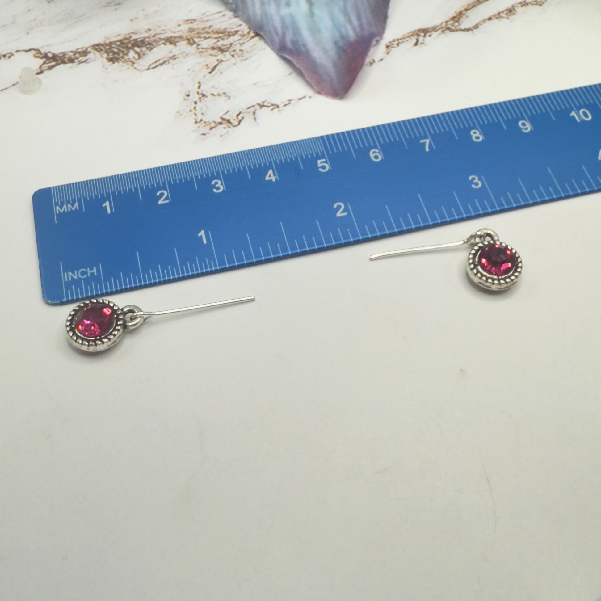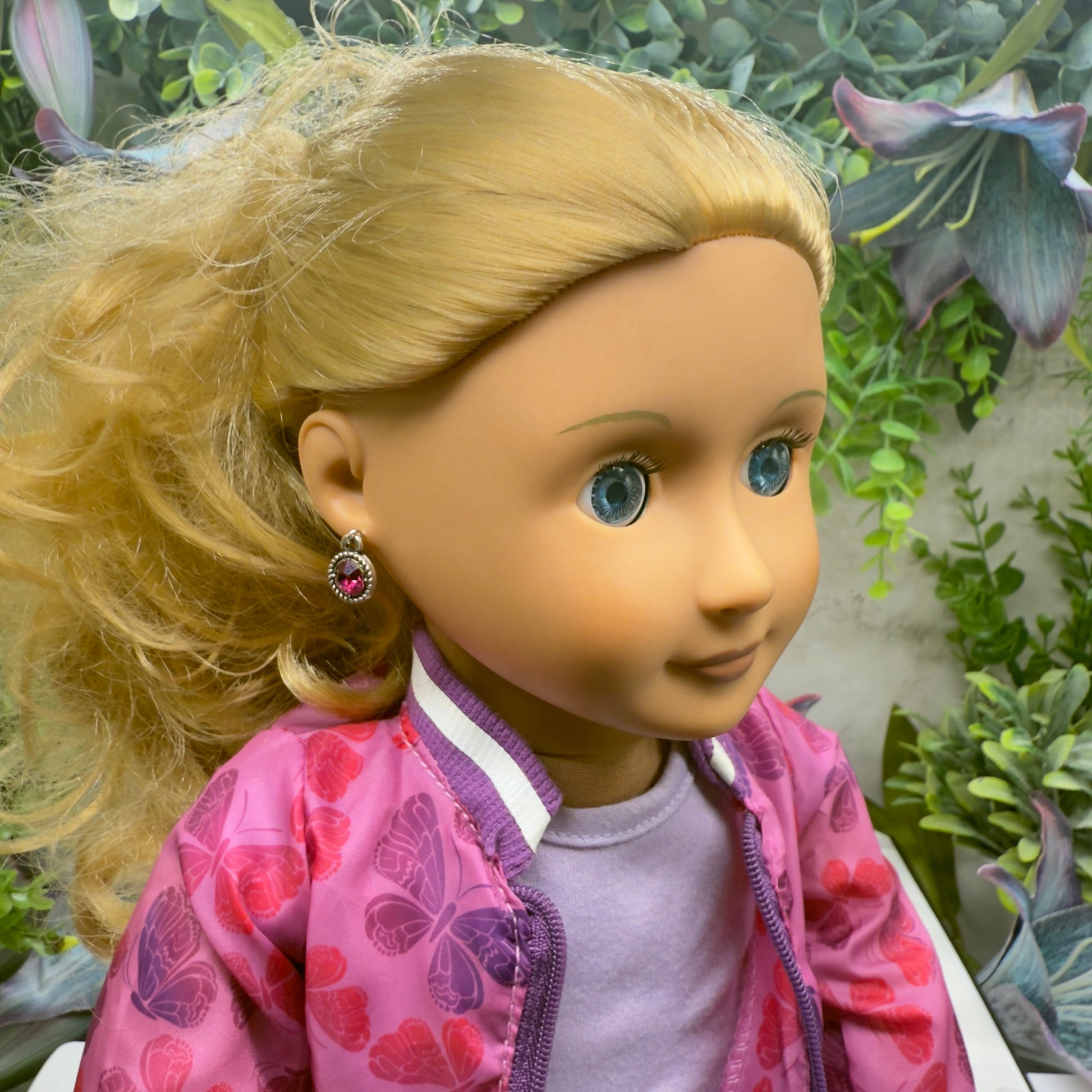 Dark Pink Round Rhinestone Dangle Doll Earrings • 18 Inch Fashion Doll Jewelry