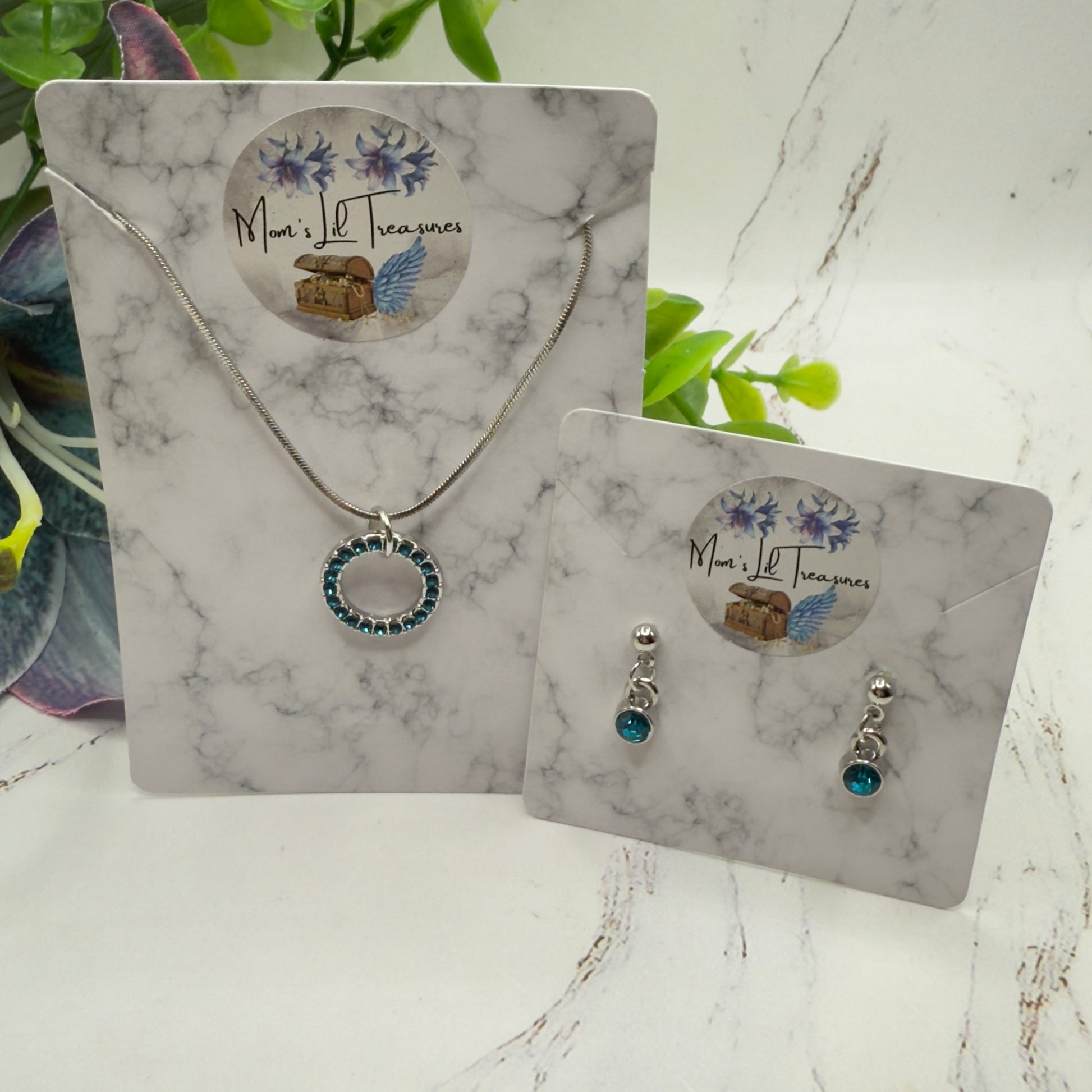 Turquoise Rhinestone Round Pendant Doll Necklace & Earrings Set • 18 Inch Fashion Doll Jewelry
