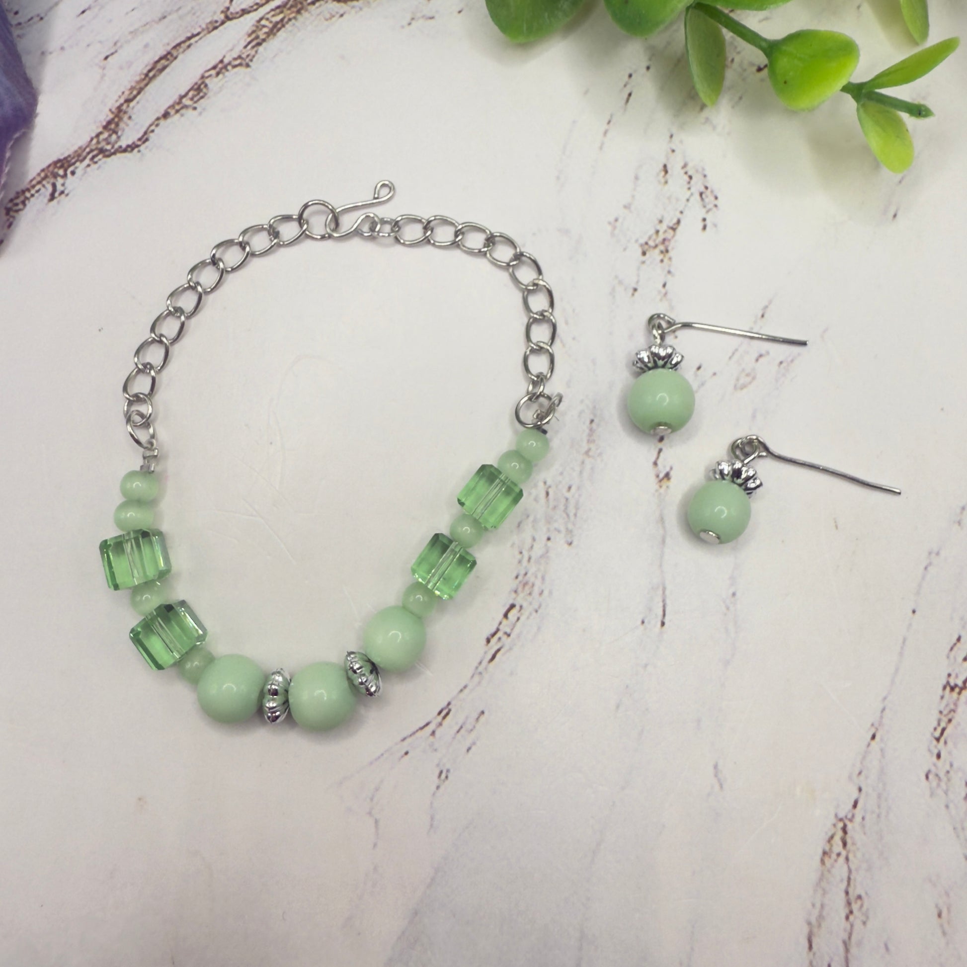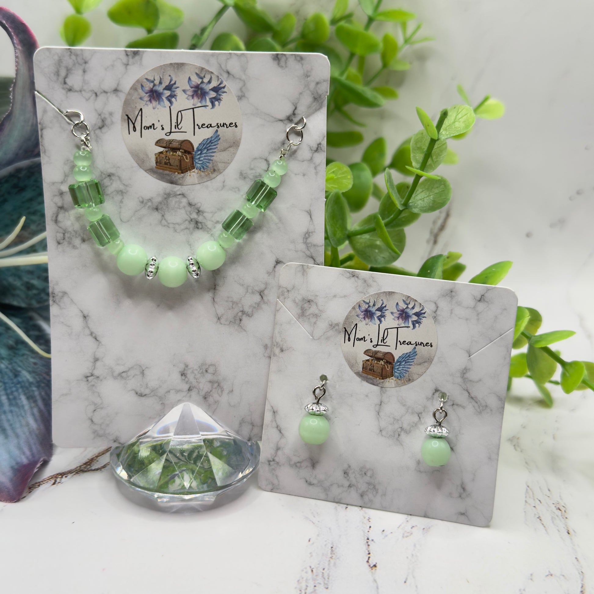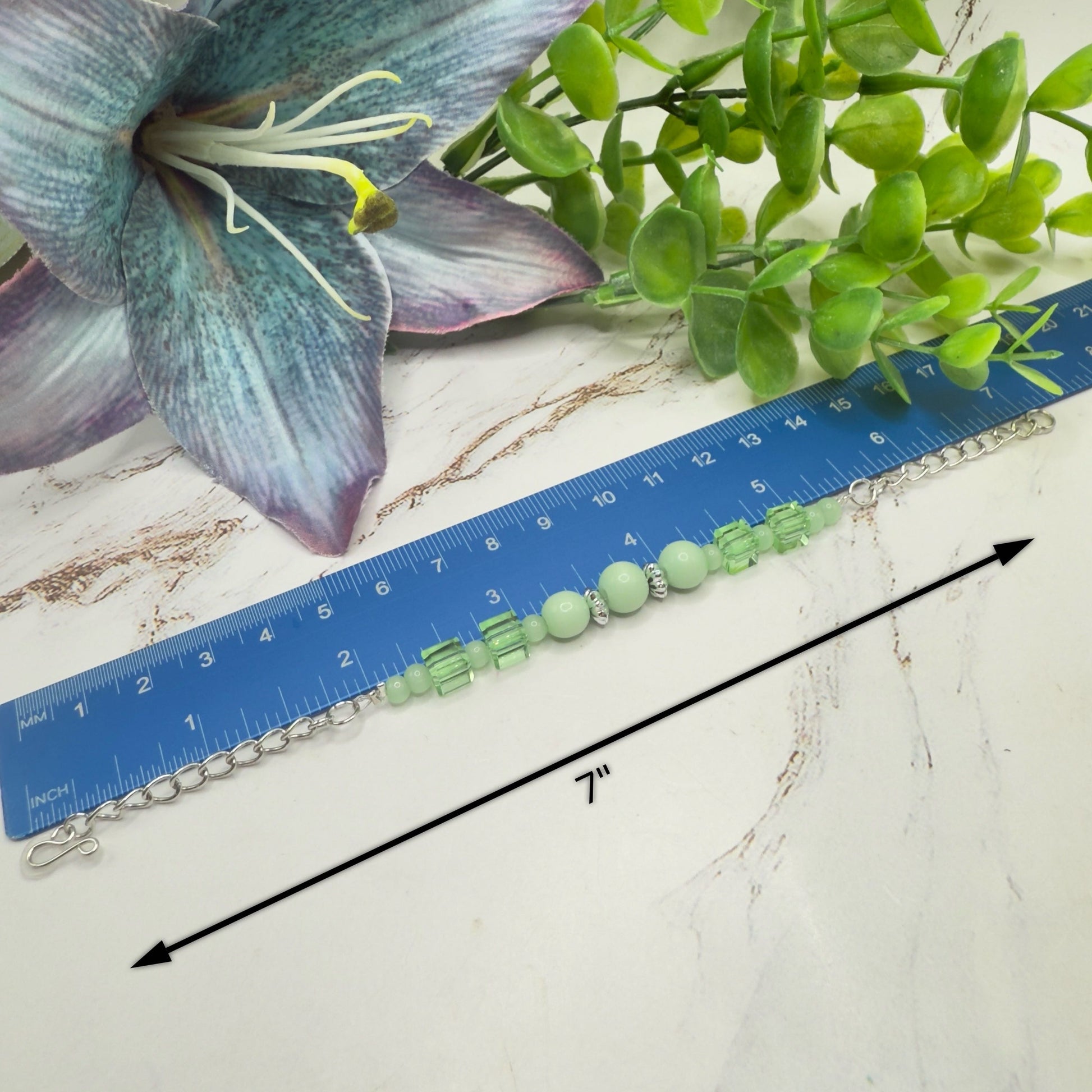 Light Green Glass Beaded Silver Chain Doll Necklace