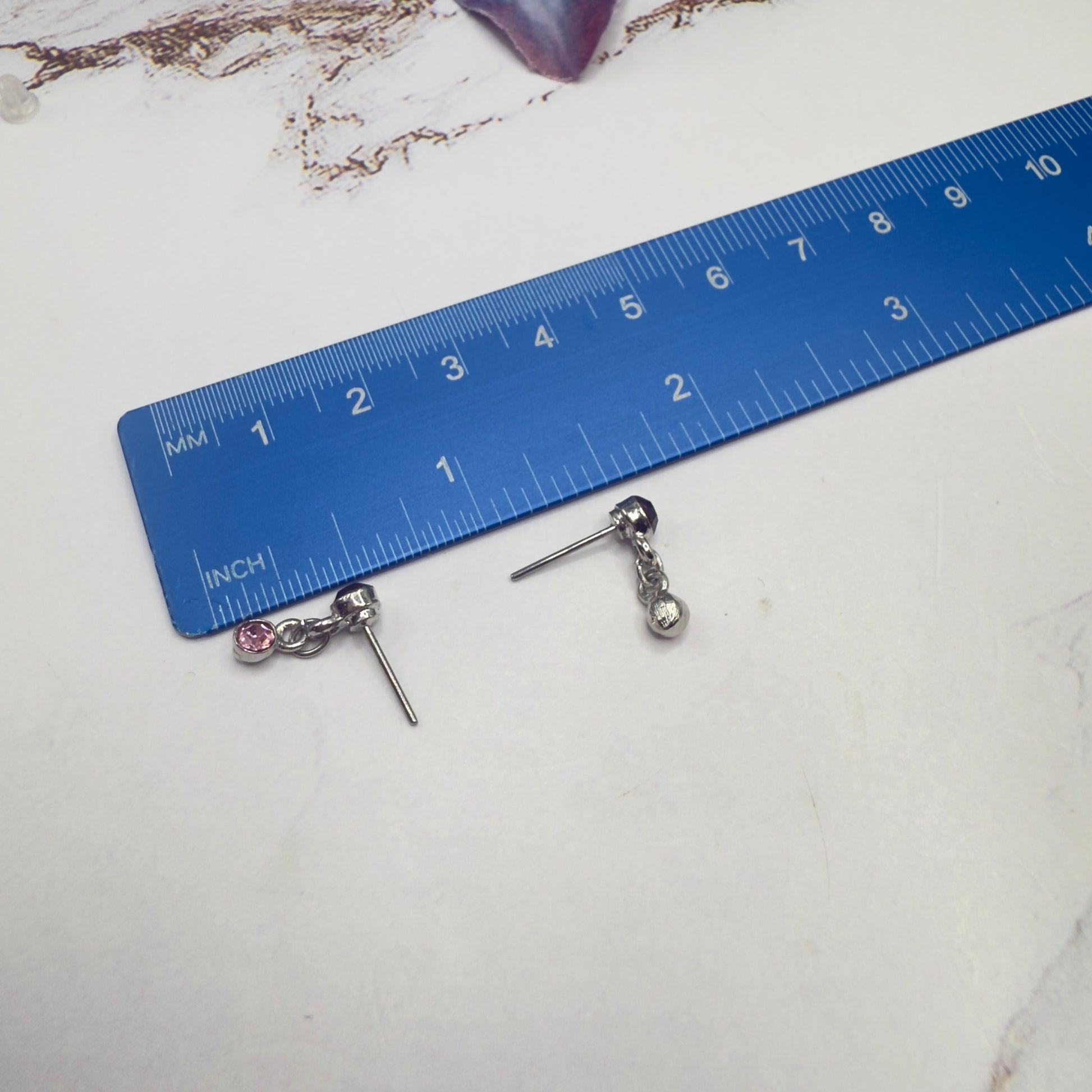- Materials / details: silver-tone chain, rhinestone, earring post findings