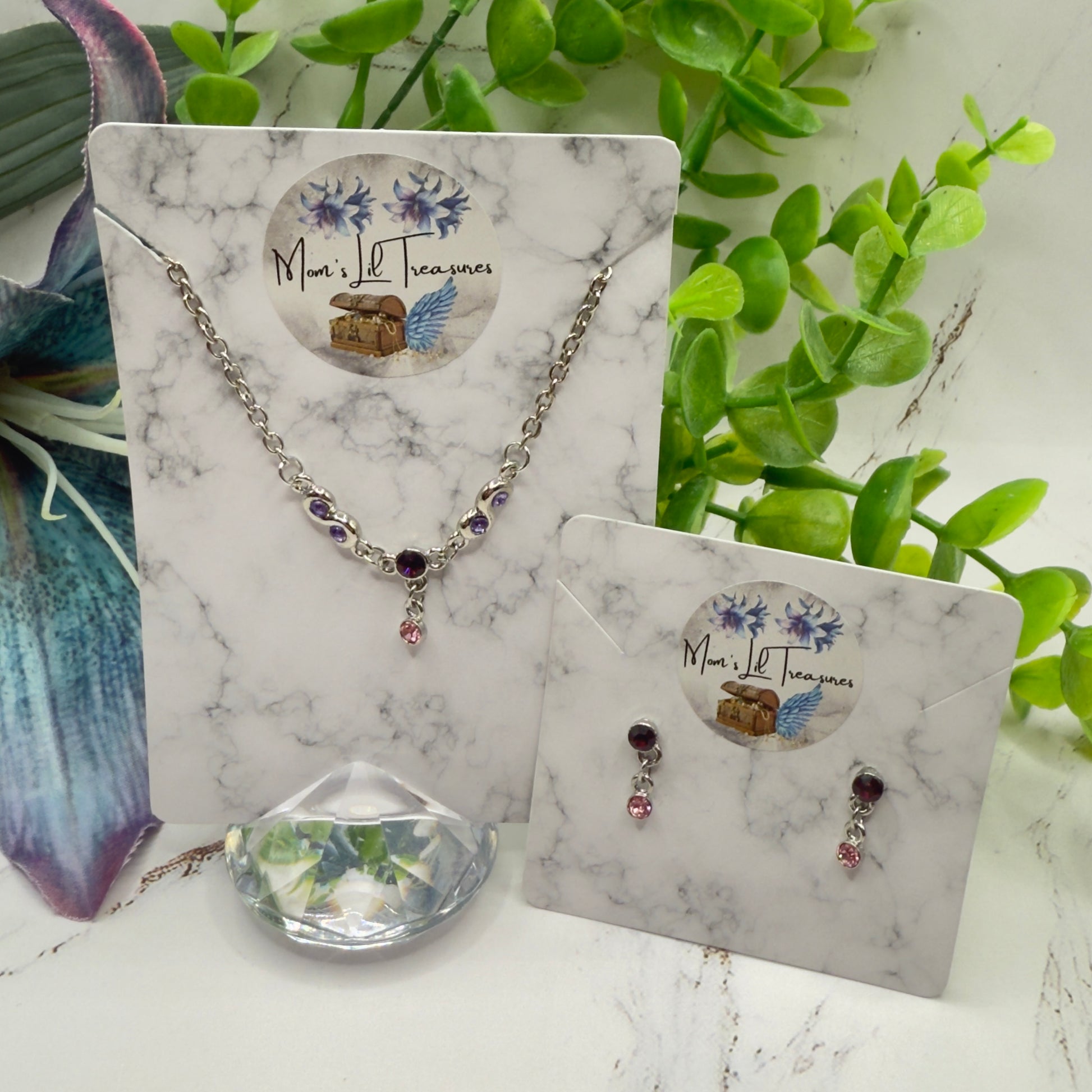 Pink Purple Rhinestone Silver Doll Necklace & Earrings Set