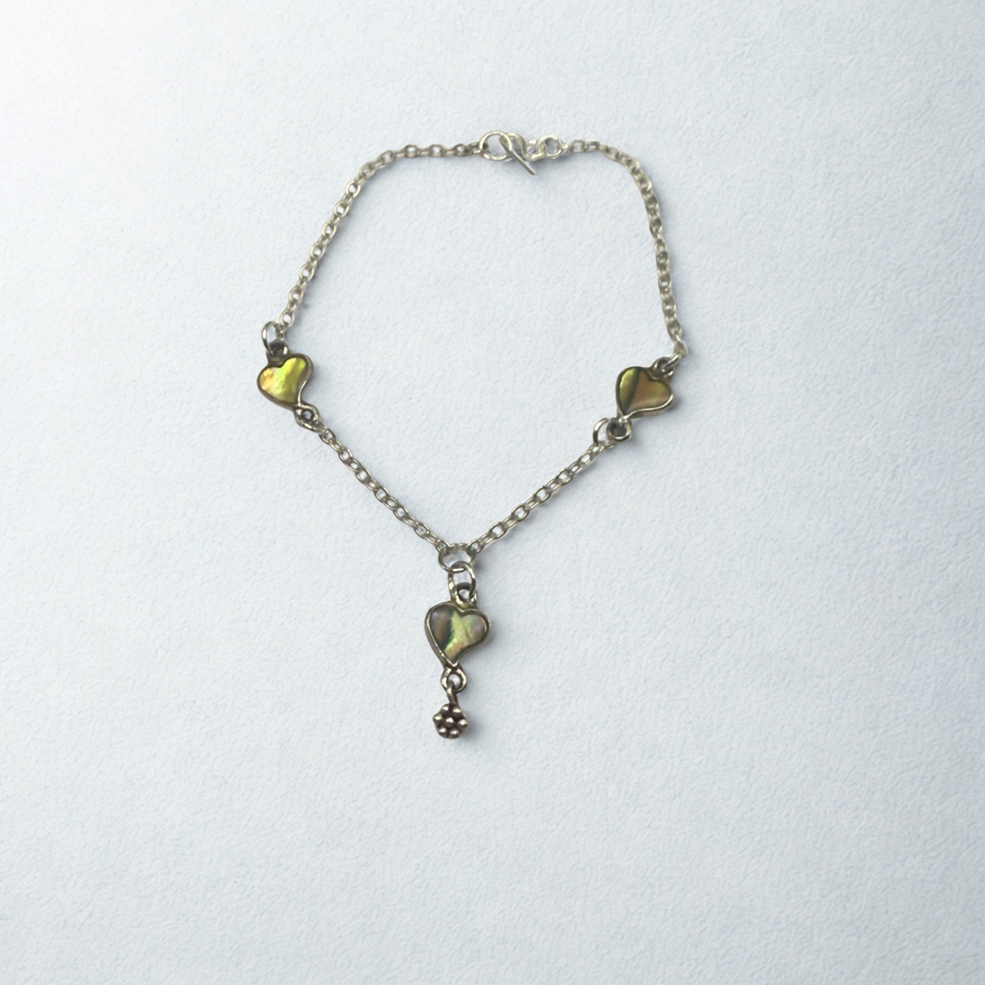 •  Materials / details: silver-tone chain, metal heart charms (abalone inlay)