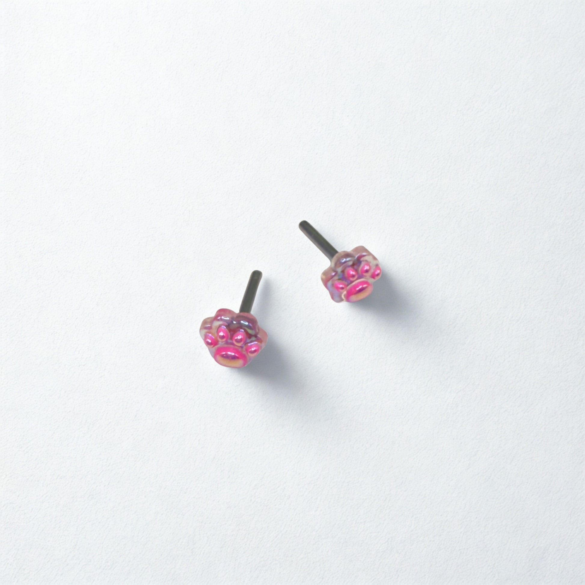 Bright Pink Paw Print Post Doll Earrings • 2mm Post fit 18 Inch Fashion Doll