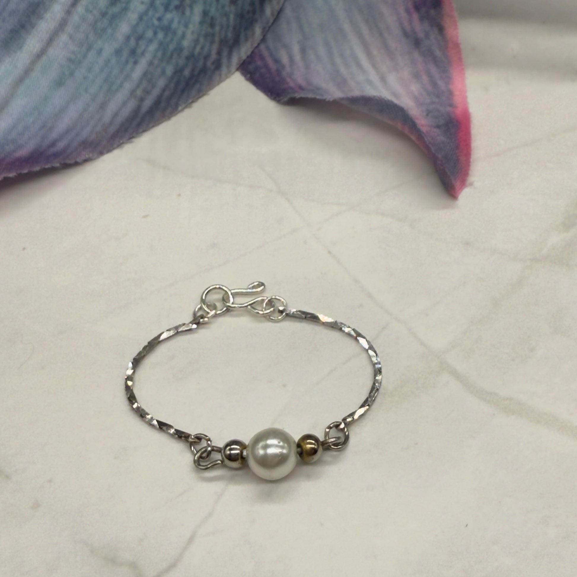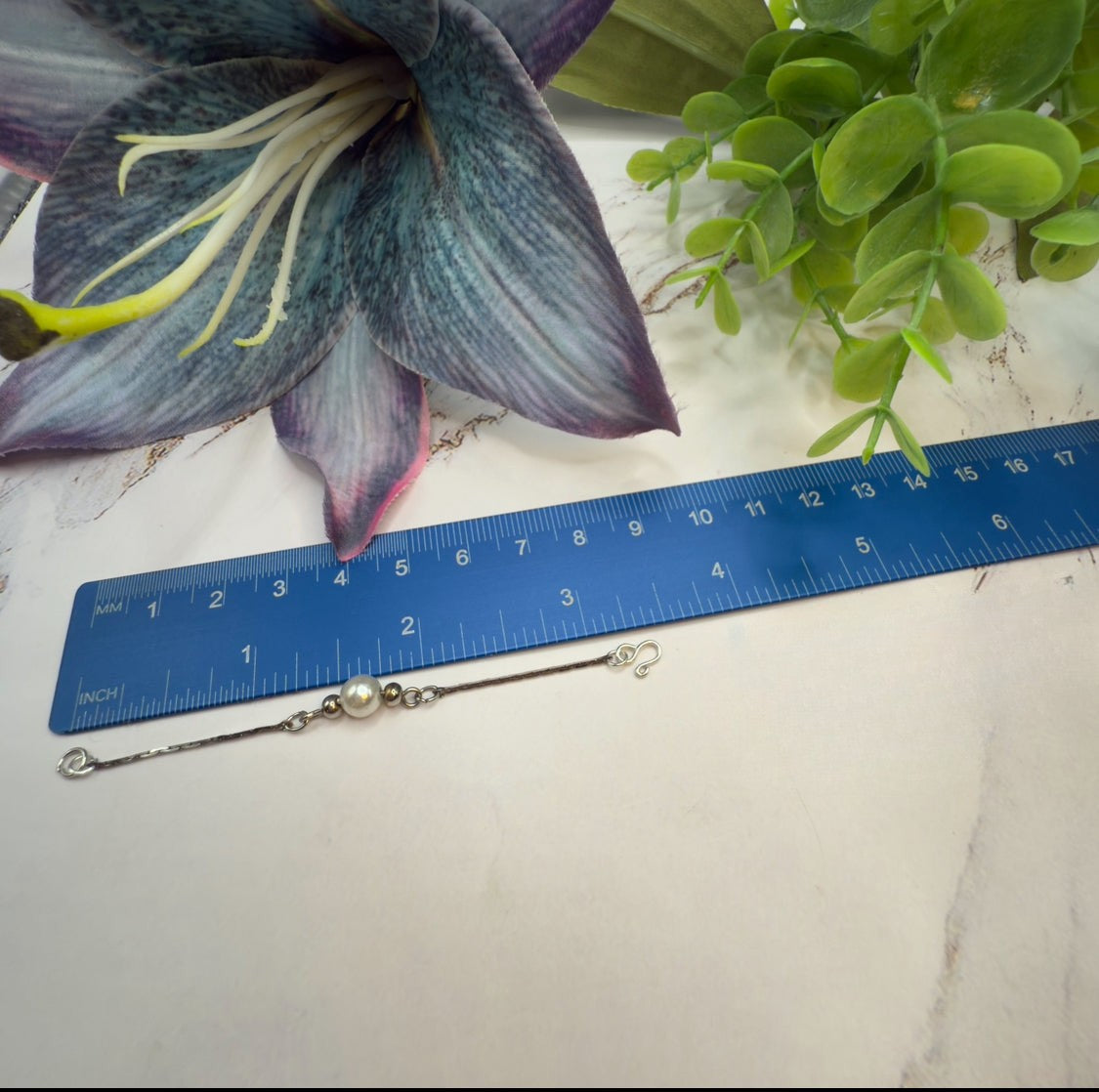 Silver Serpentine Chain Pearl Pendant Doll Necklace. Necklace measures 3-3/8 inches long.