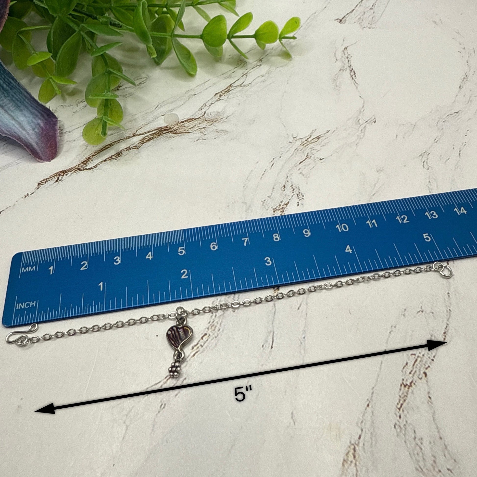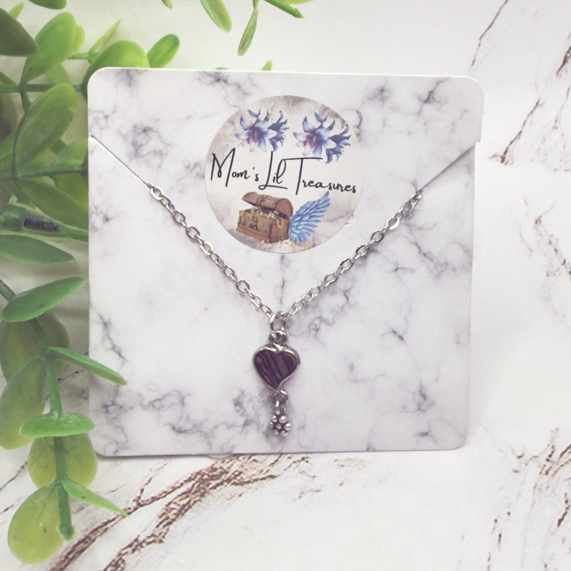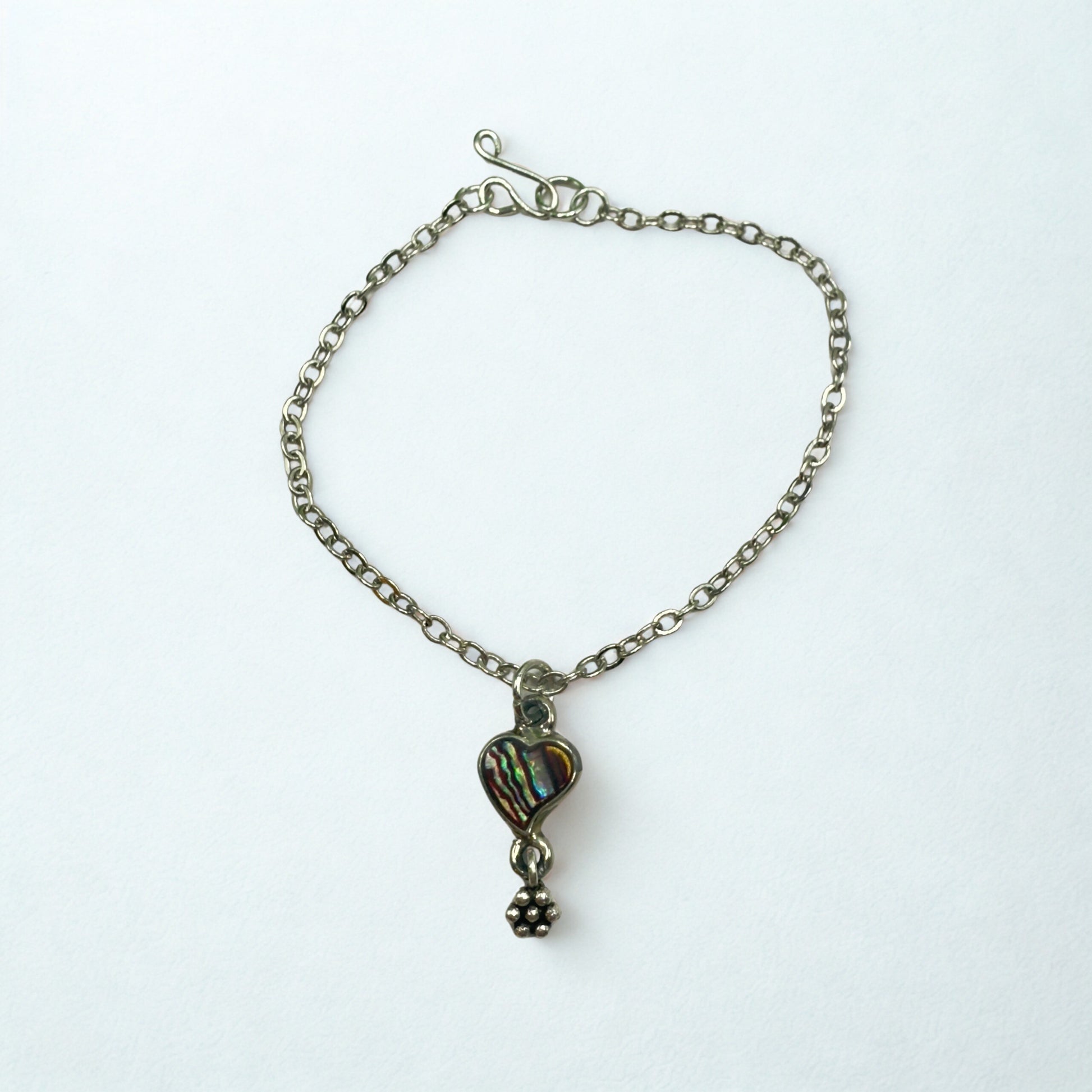 • Details / Materials: silver-tone chain - findings - charm, heart charm (what appears to be abalone inlay)