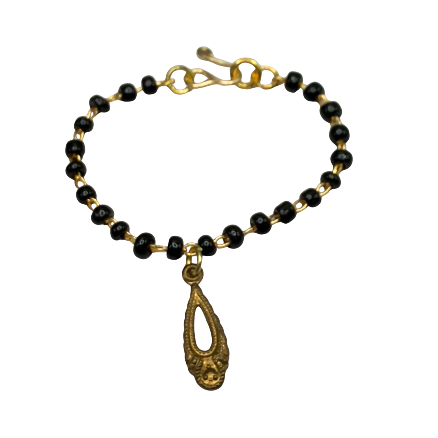 Black Glass Beaded Gold Teardrop Pendant Doll Necklace