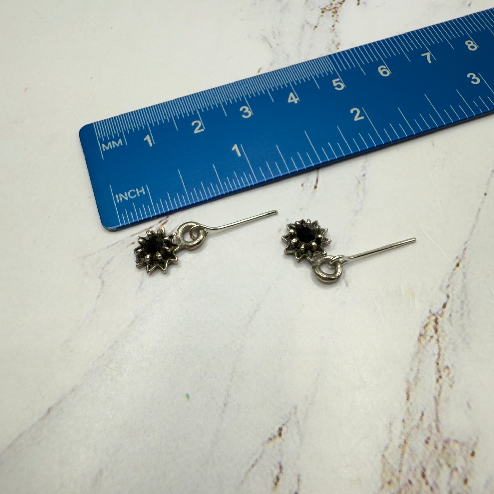 Black Rhinestone Flower Charm Silver Chain Doll Necklace & Earrings Set