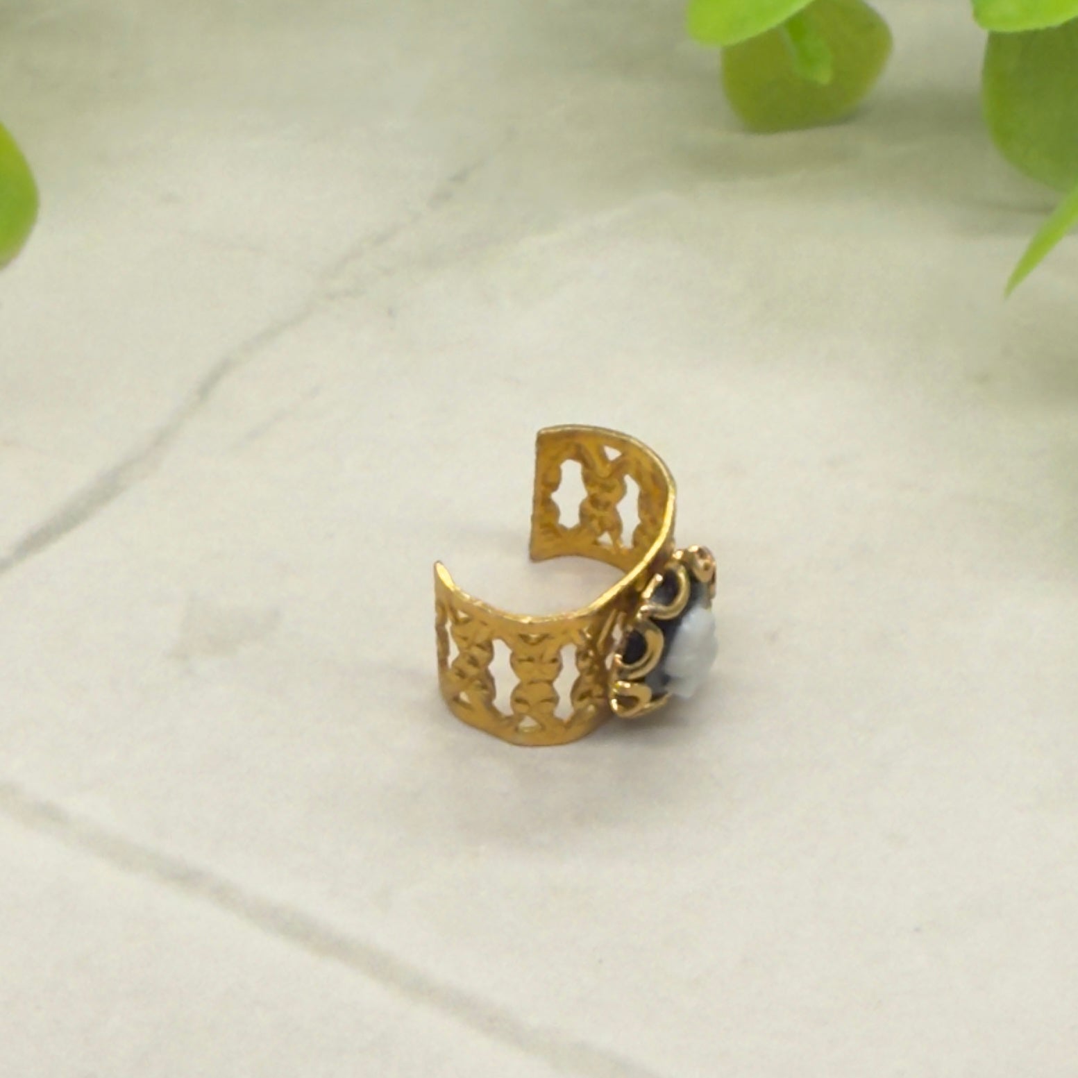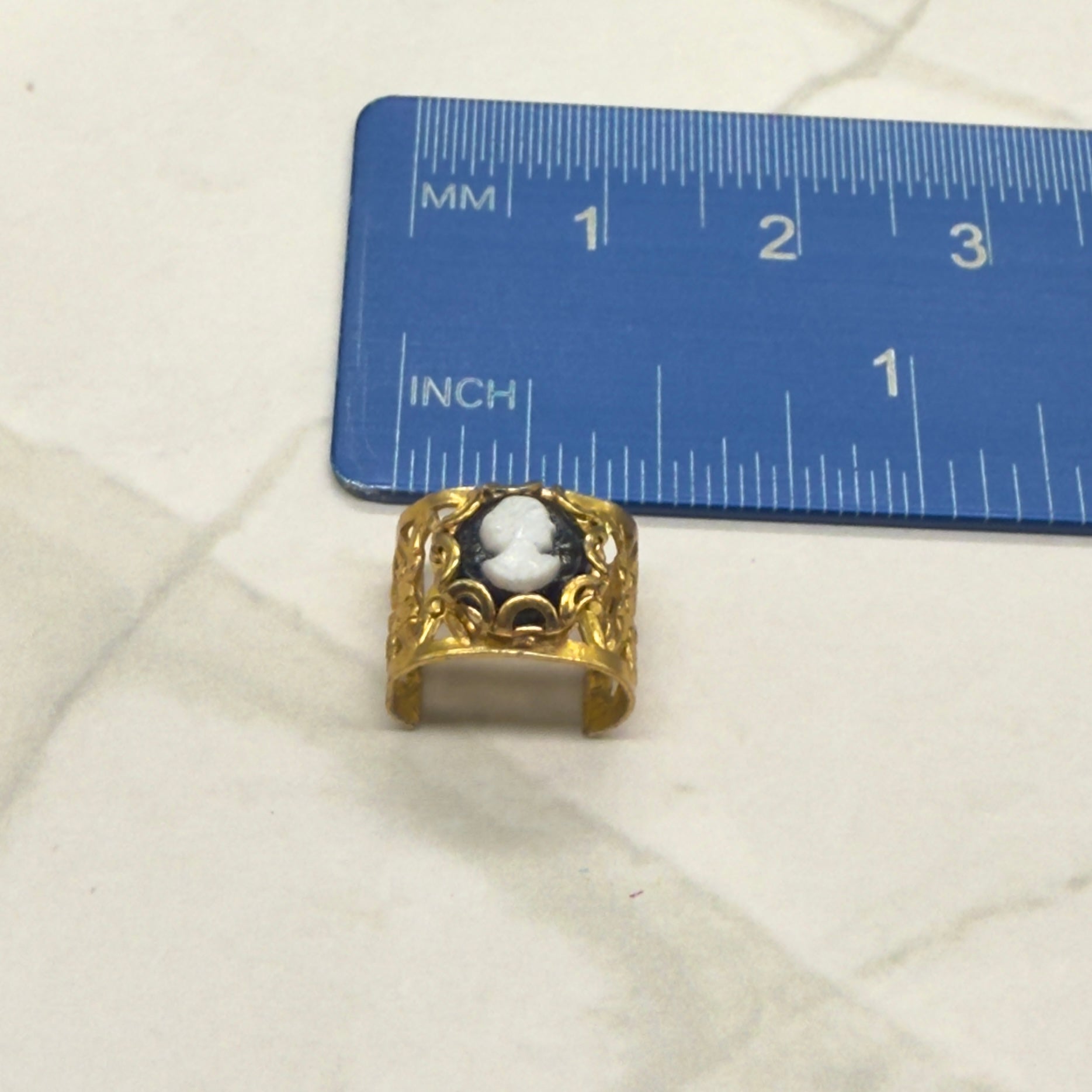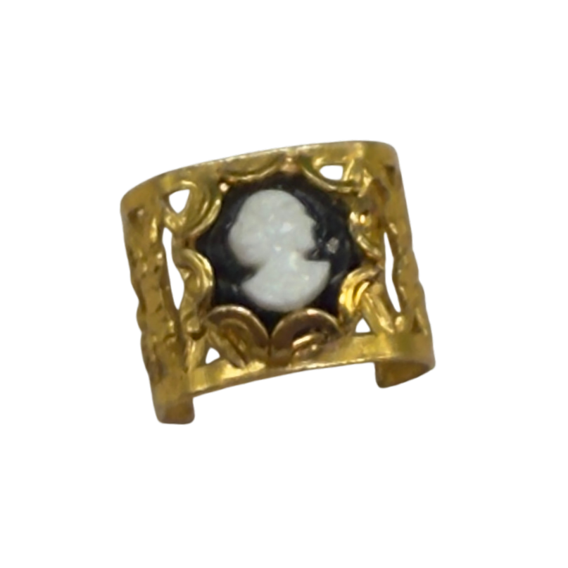 Black & White Cameo Gold Filigree Cuff Doll Bracelet. Flexible metal to adjust to doll’s wrist.