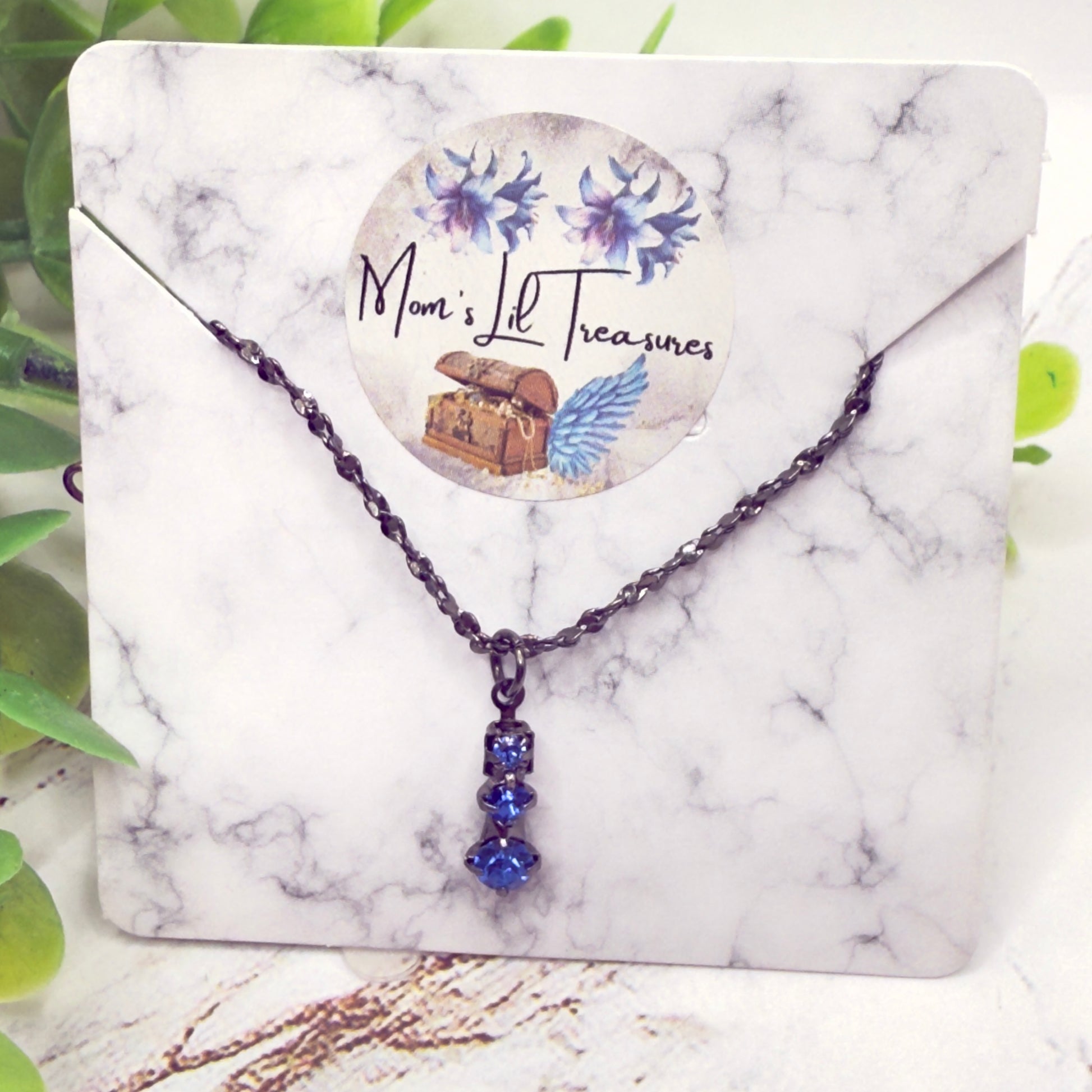 Blue Rhinestone Pendant Black Chain Doll Necklace • 16 Inch Fashion Doll Jewelry