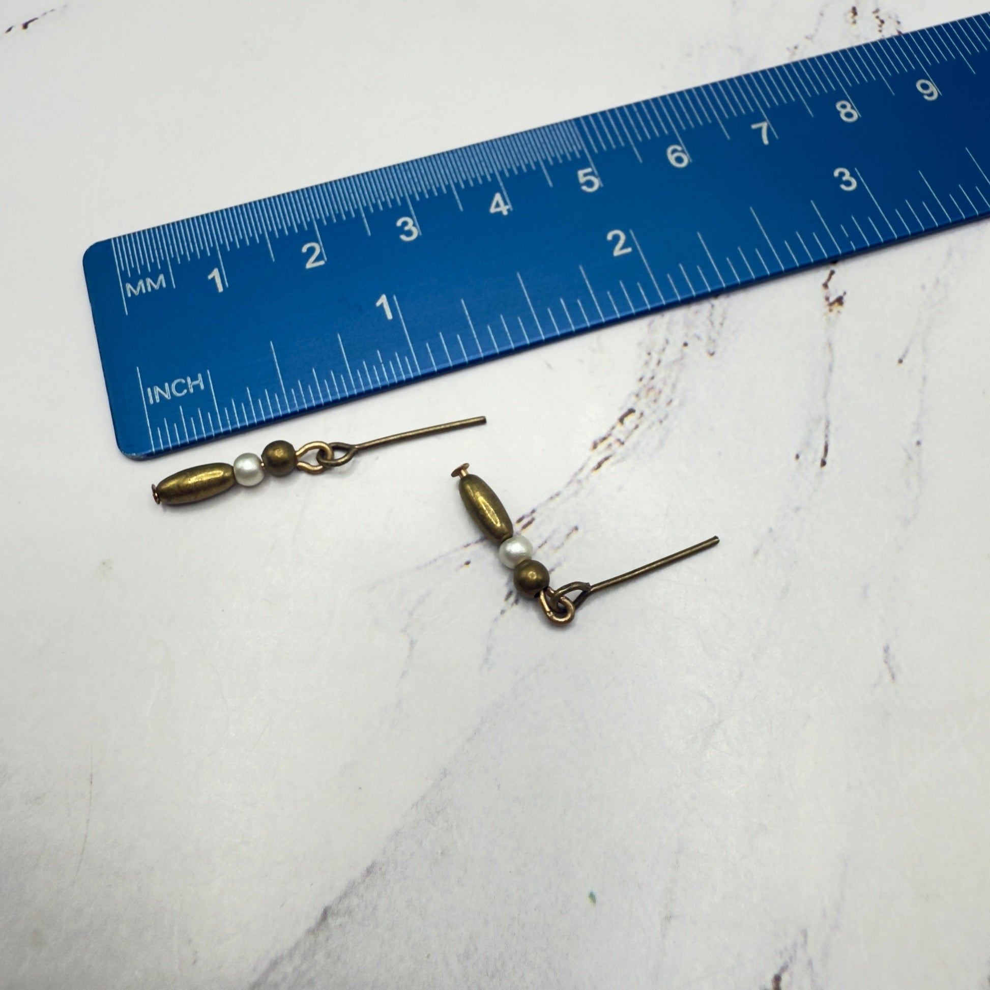 Bronze Brass Tone Pearl & Metal Bead Dangle Doll Necklace Earrings Set