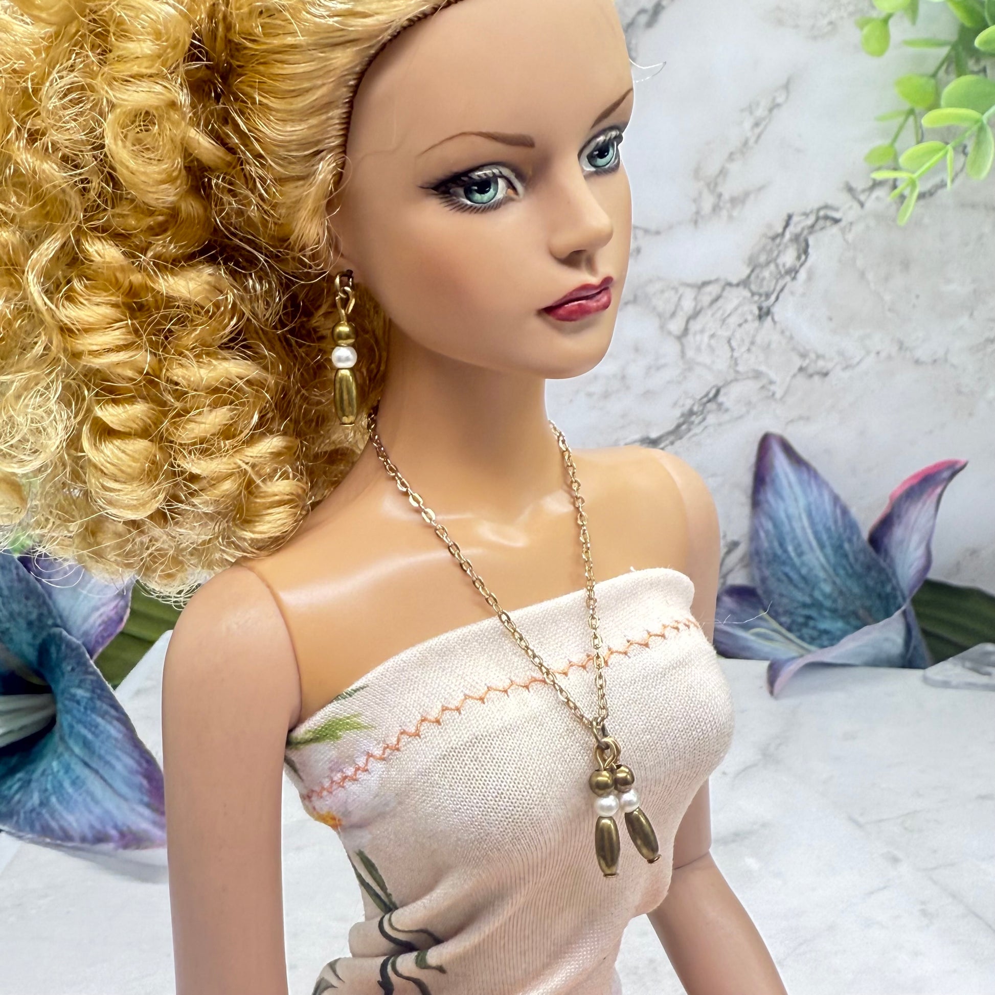 • Doll Size / Scale: Pics included with necklace and earrings shown on 16” Tonner - doll (Neck measures 2 7/8” around)