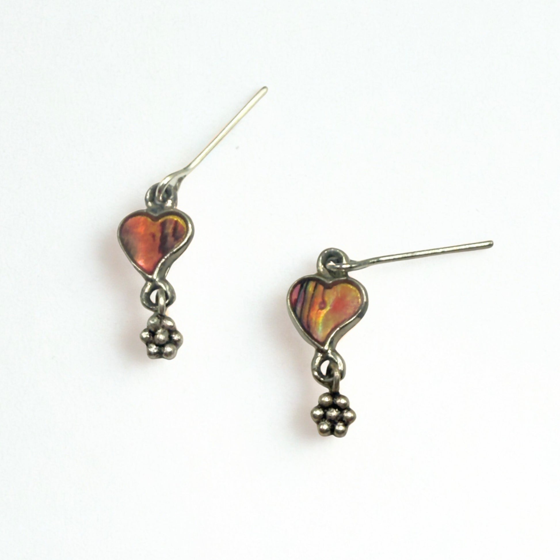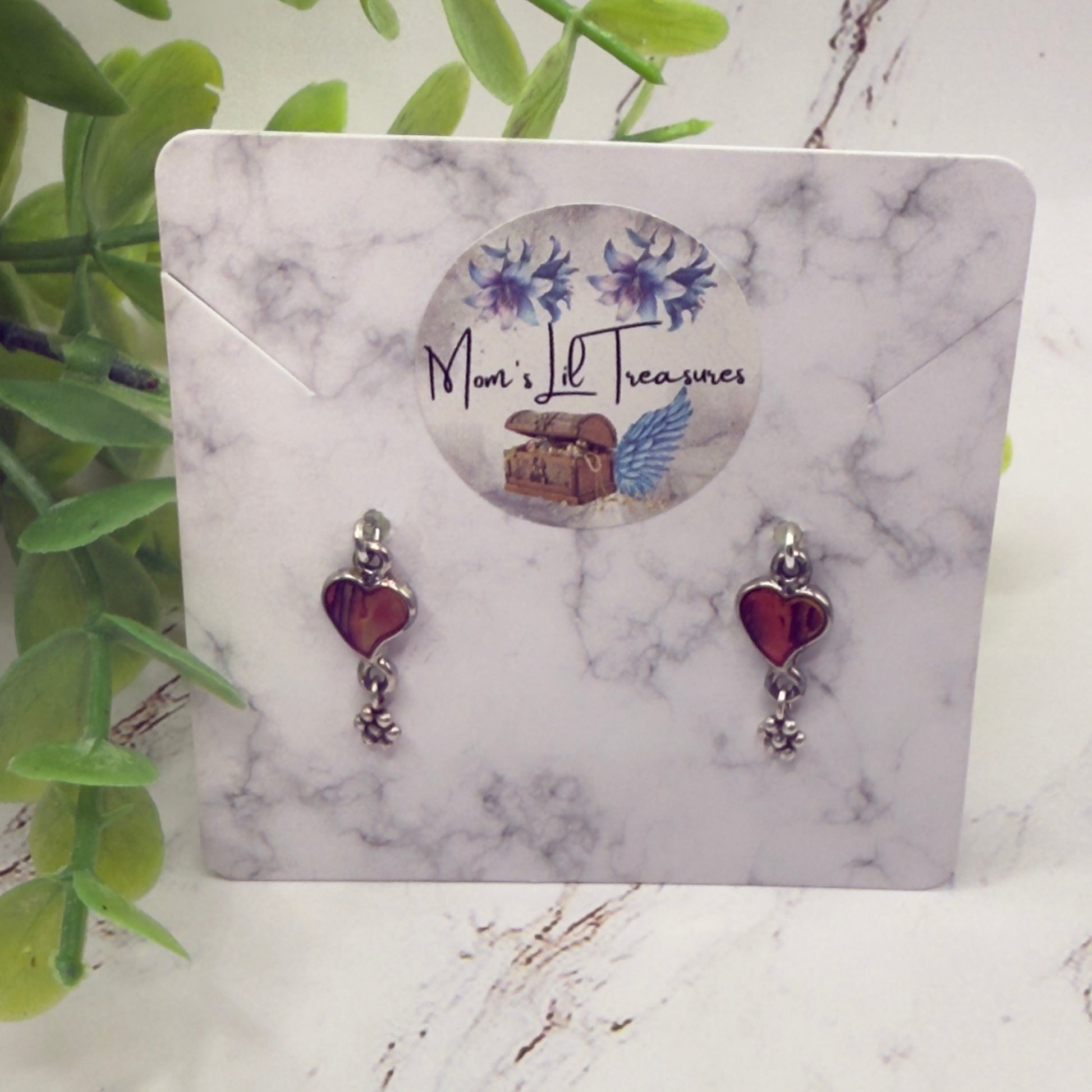 Burgundy & Rust Color Abalone Heart Silver Dangle Doll Earrings