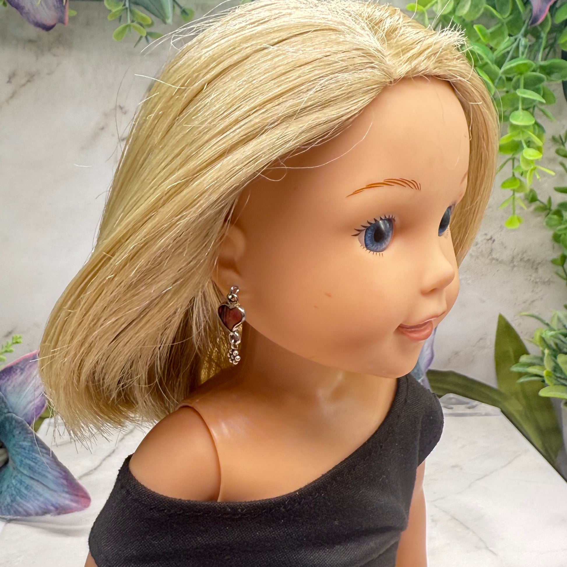 Burgundy Rust Abalone Heart Silver Dangle Doll Earrings • 14 Inch Doll Jewelry