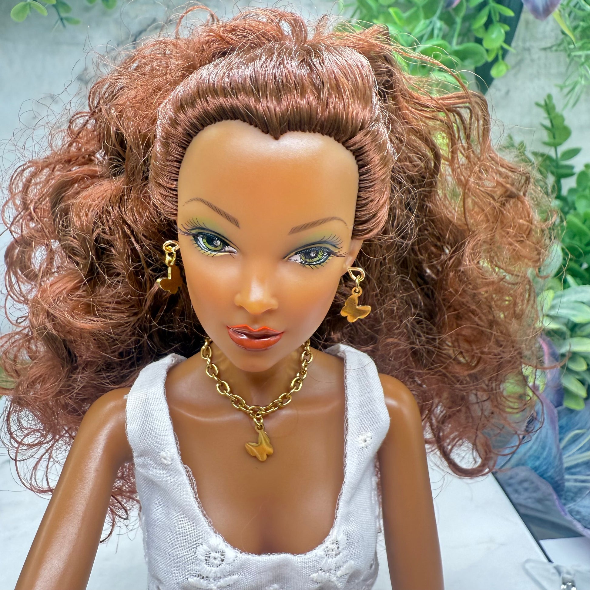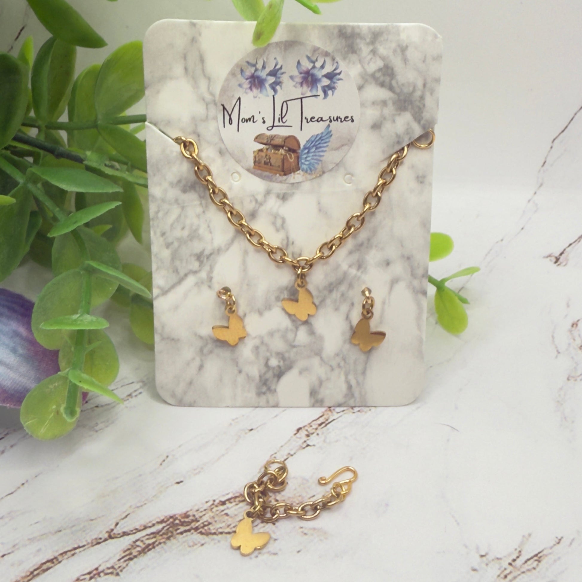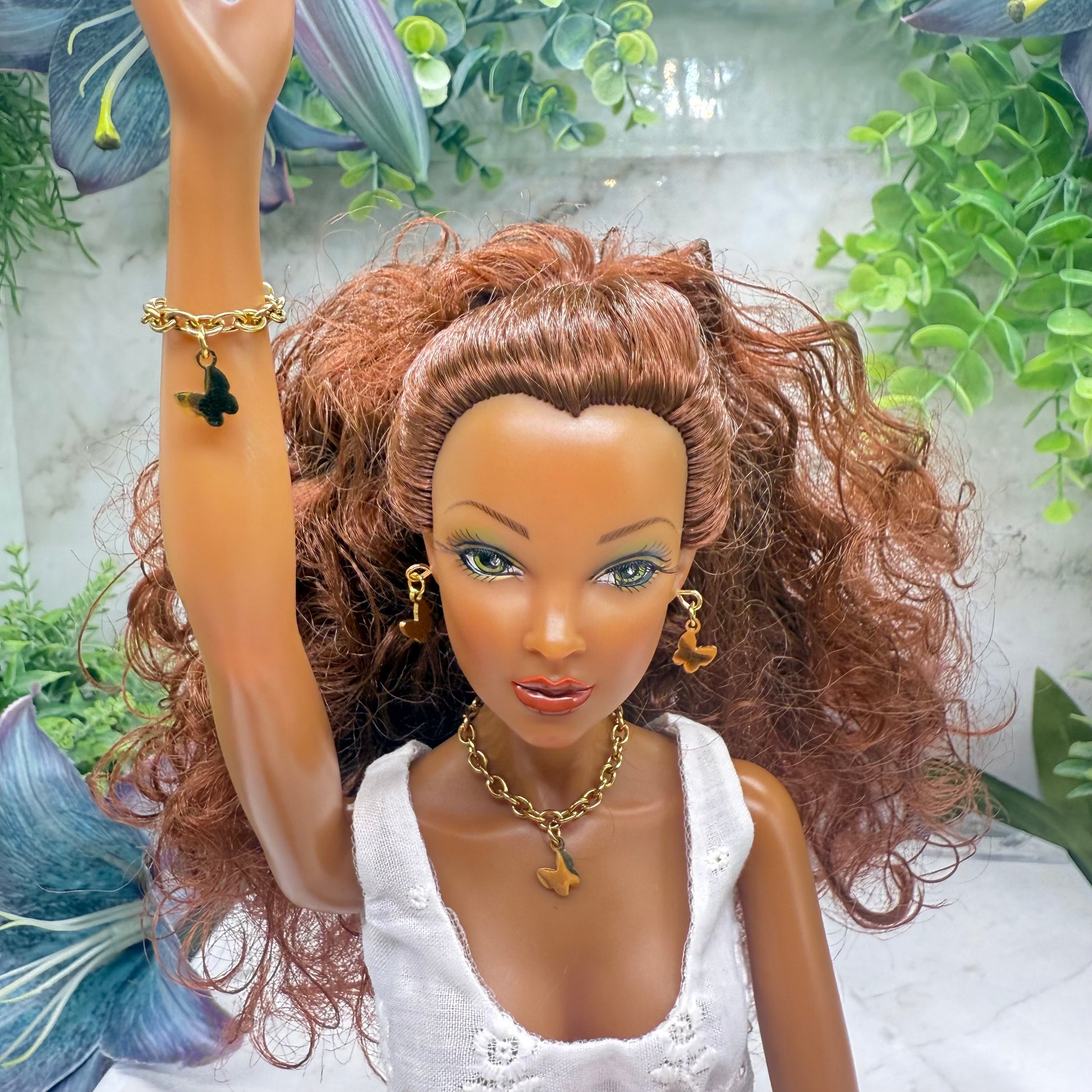 Butterfly Charm Gold Doll Necklace Earrings and Bracelet Set