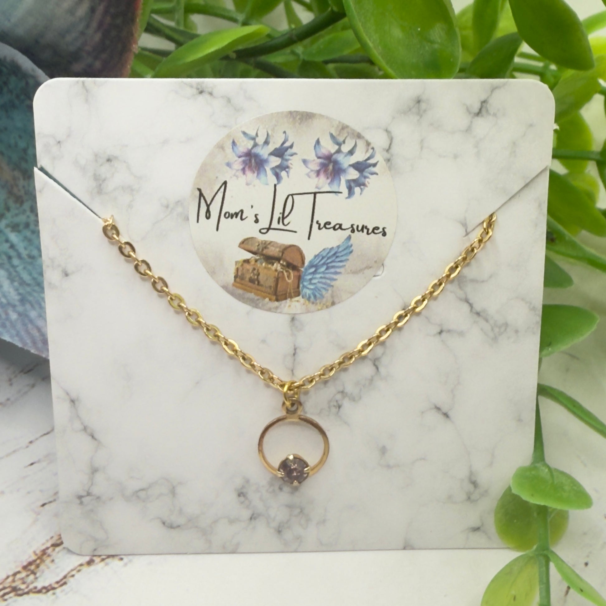 Circle Charm Purple Rhinestone Gold Chain Doll Necklace