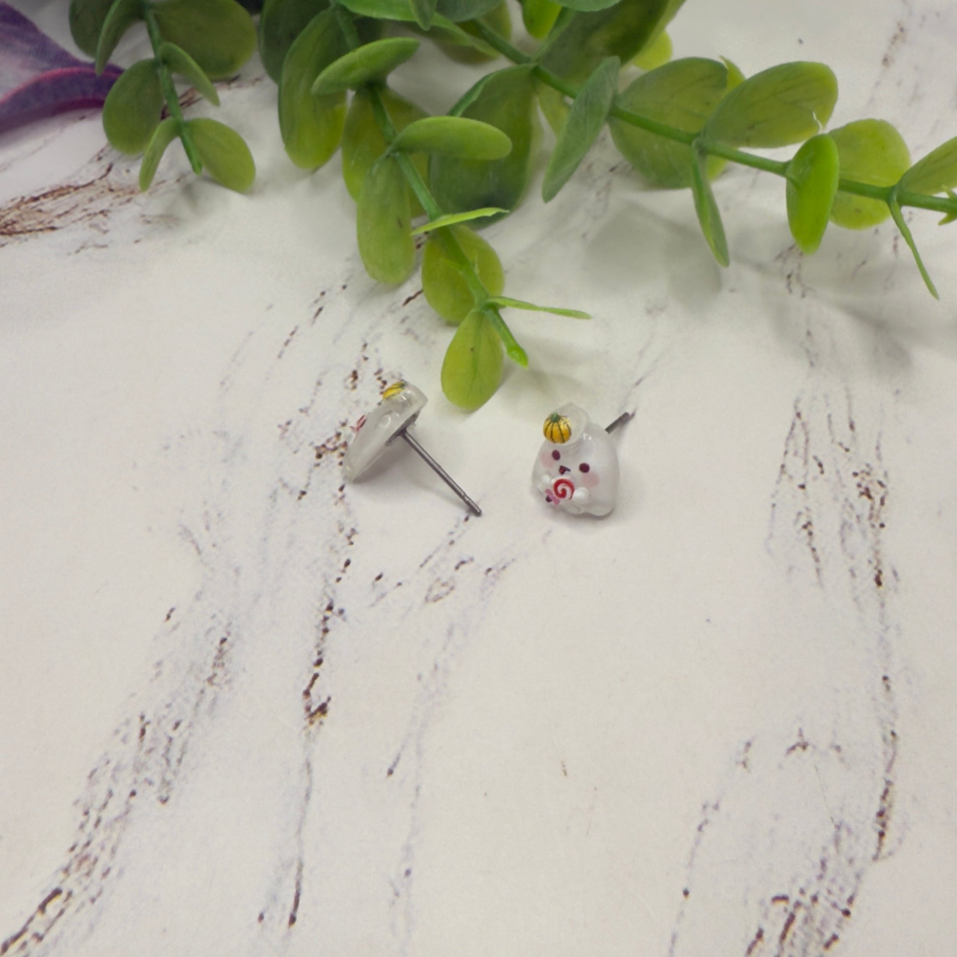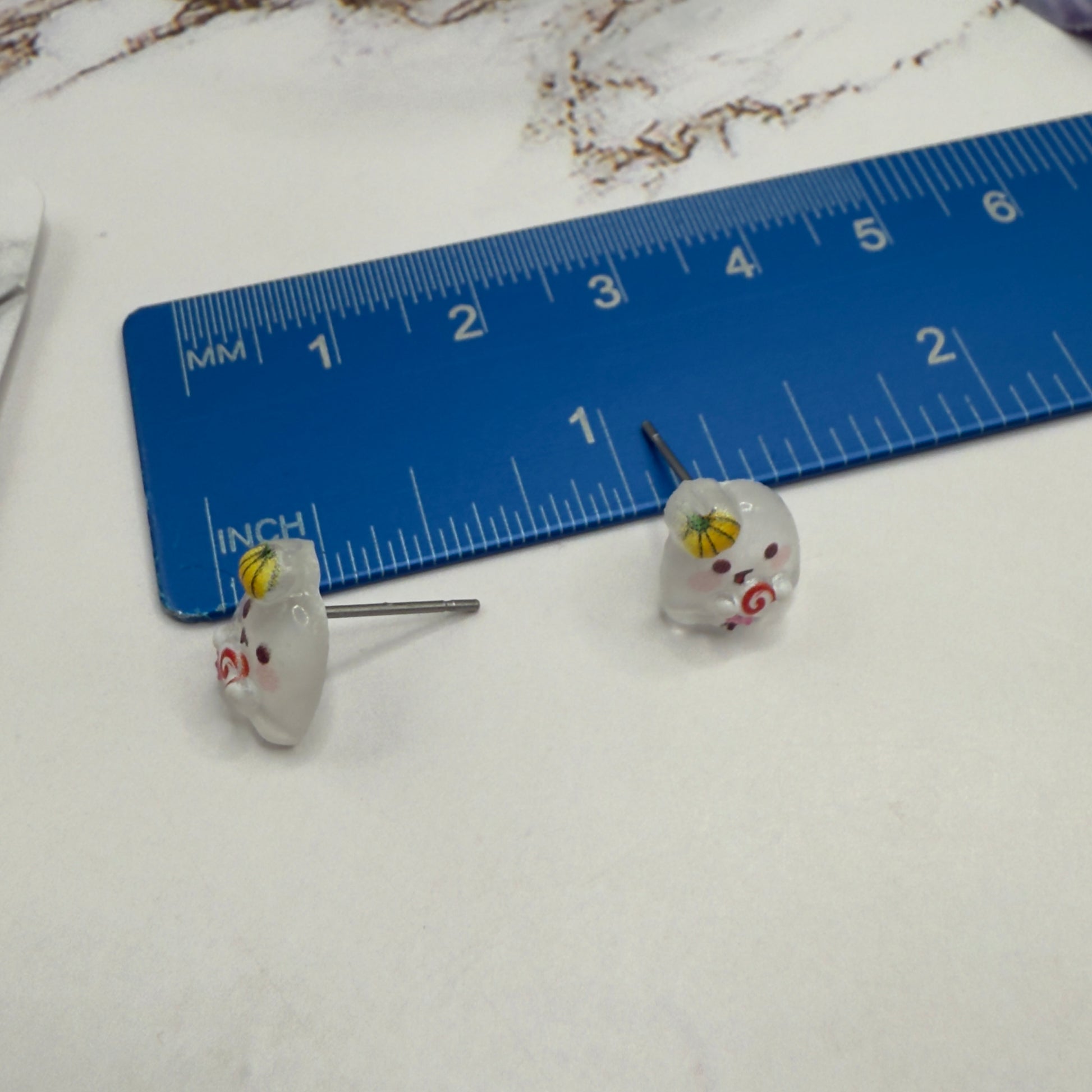 Ghost with Pumpkin hat Halloween Stud Doll Earrings