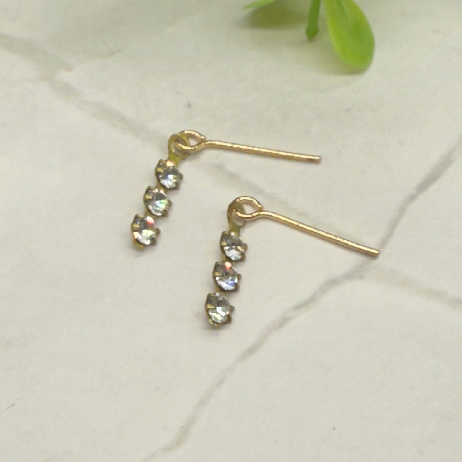 Gold 3 Clear Rhinestone Dangle Doll Earrings.