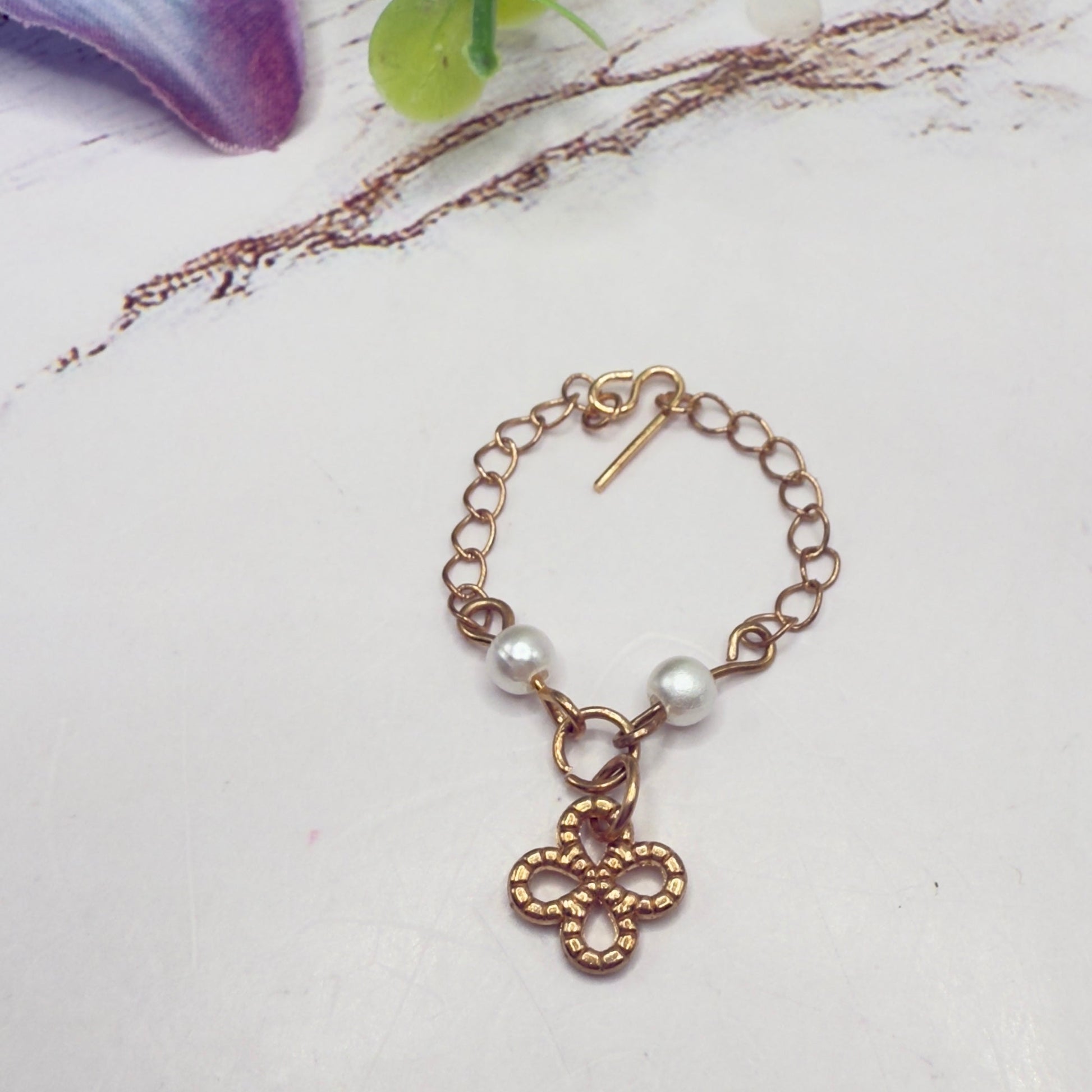 Clover Shape Pendant Pearl Accent Gold Chain Doll Necklace