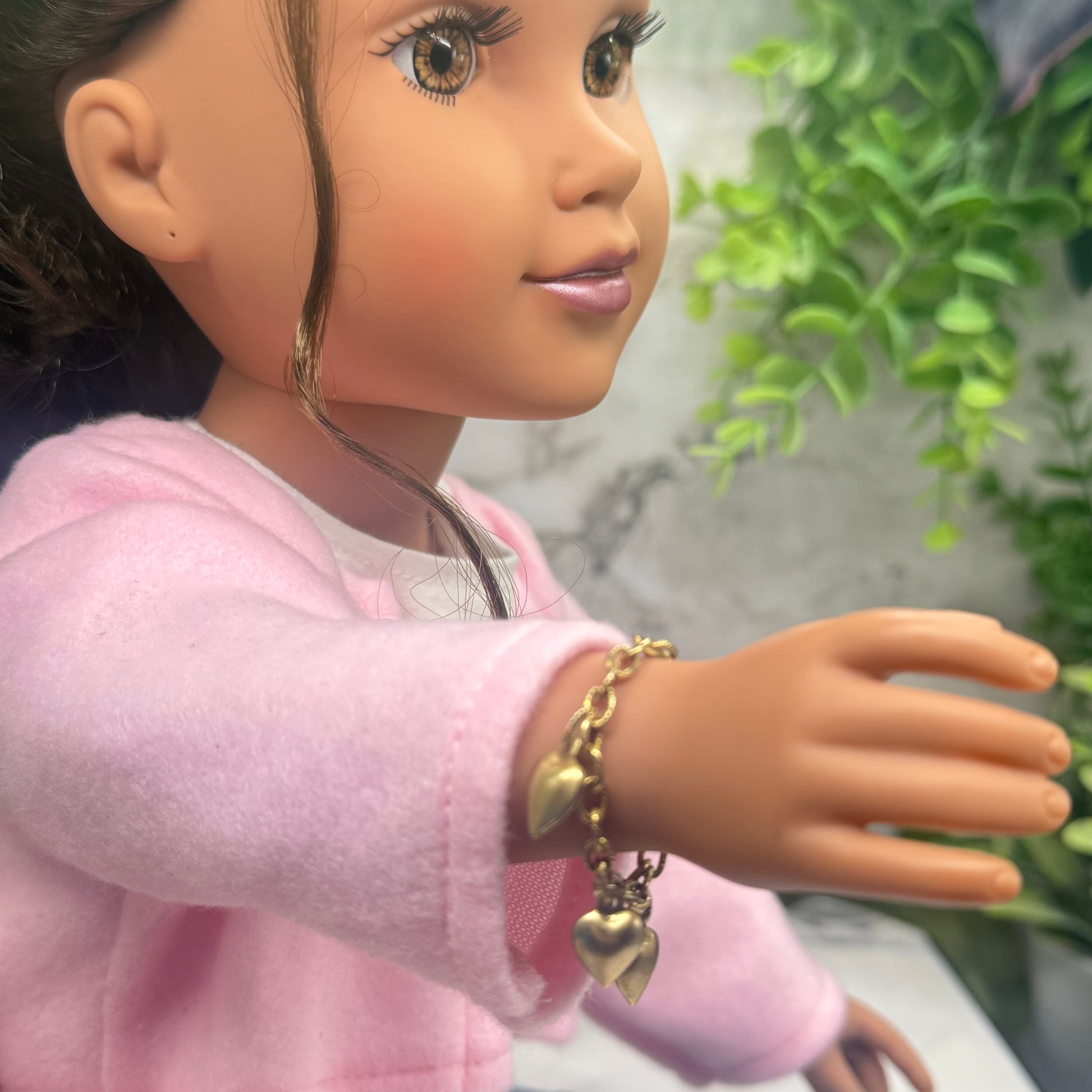 Gold Heart Dangle Charm Doll Bracelet • 18 Inch Fashion Doll Jewelry