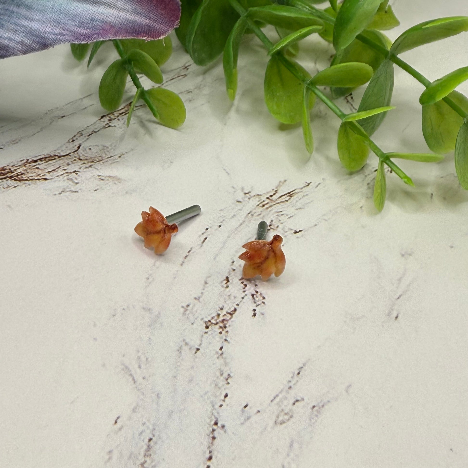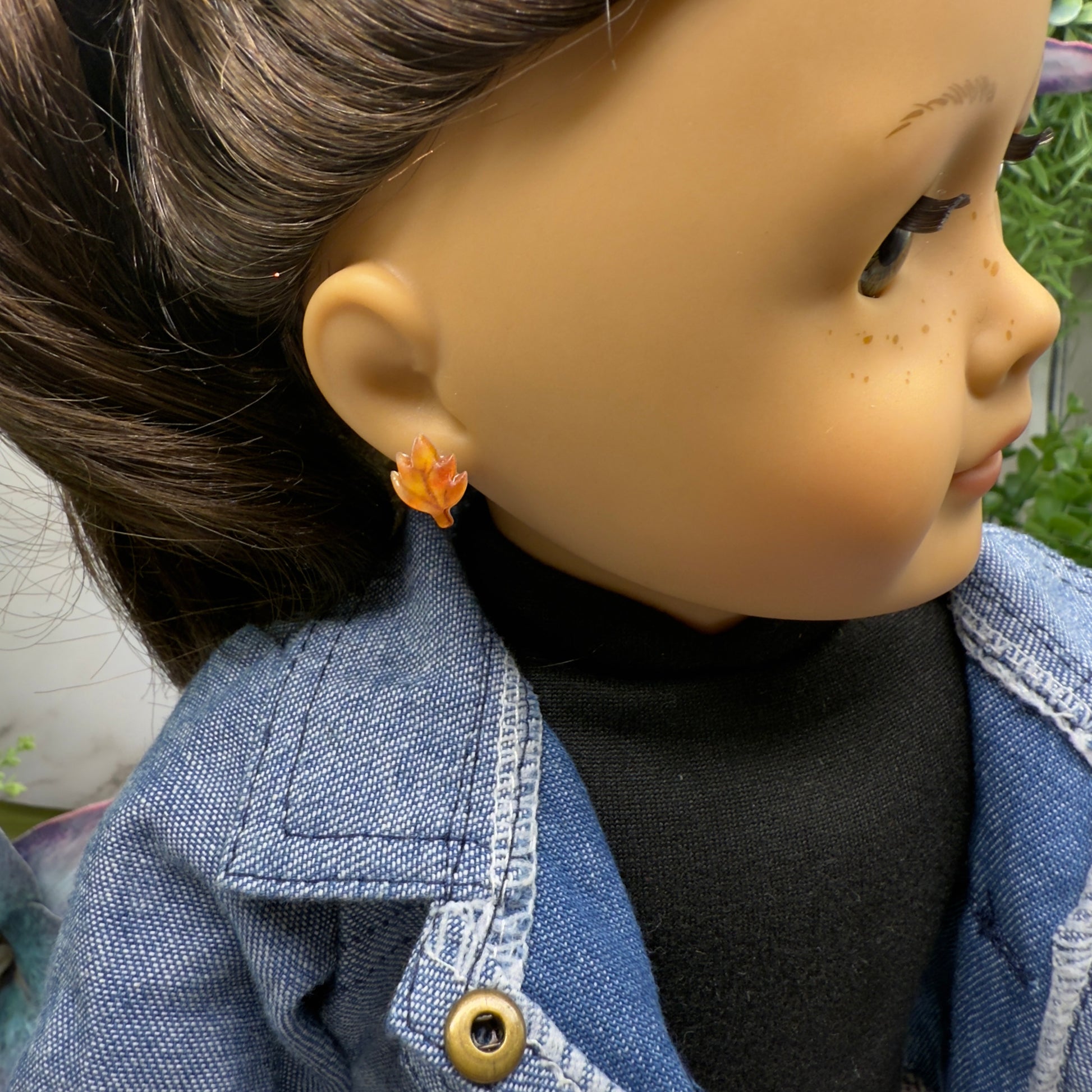 Golden Autumn Fall Leaf Post Doll Earrings • 2mm Post for 18 Inch Fashion Doll