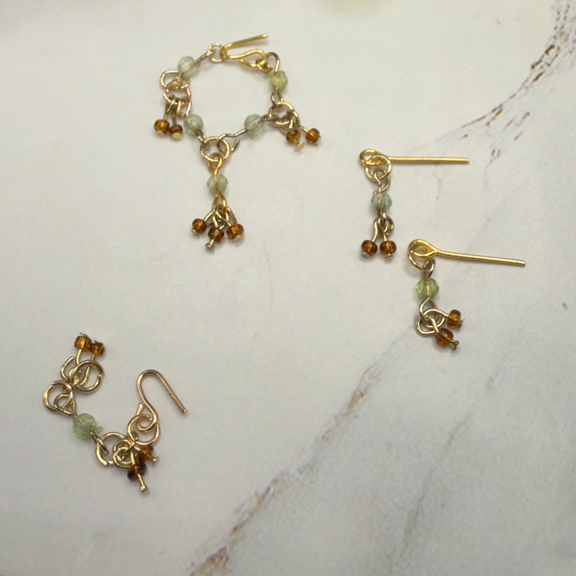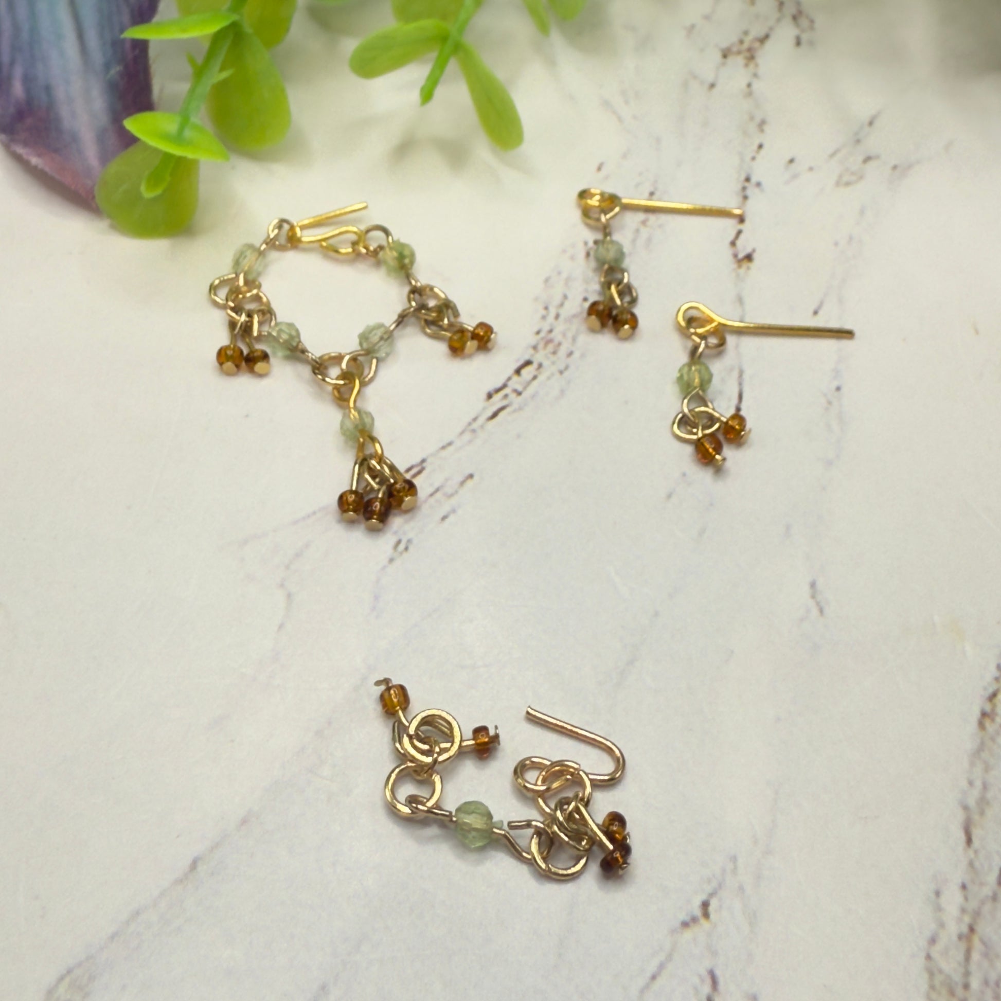 Green Brown Glass Dangle Doll Necklace Earrings Bracelet Set • 10-12” 1:6 Fashion Doll Jewelry