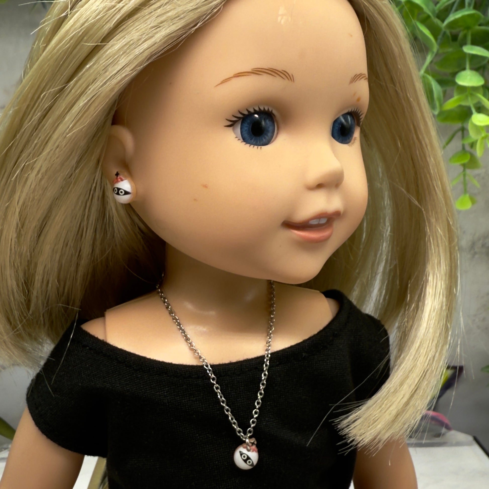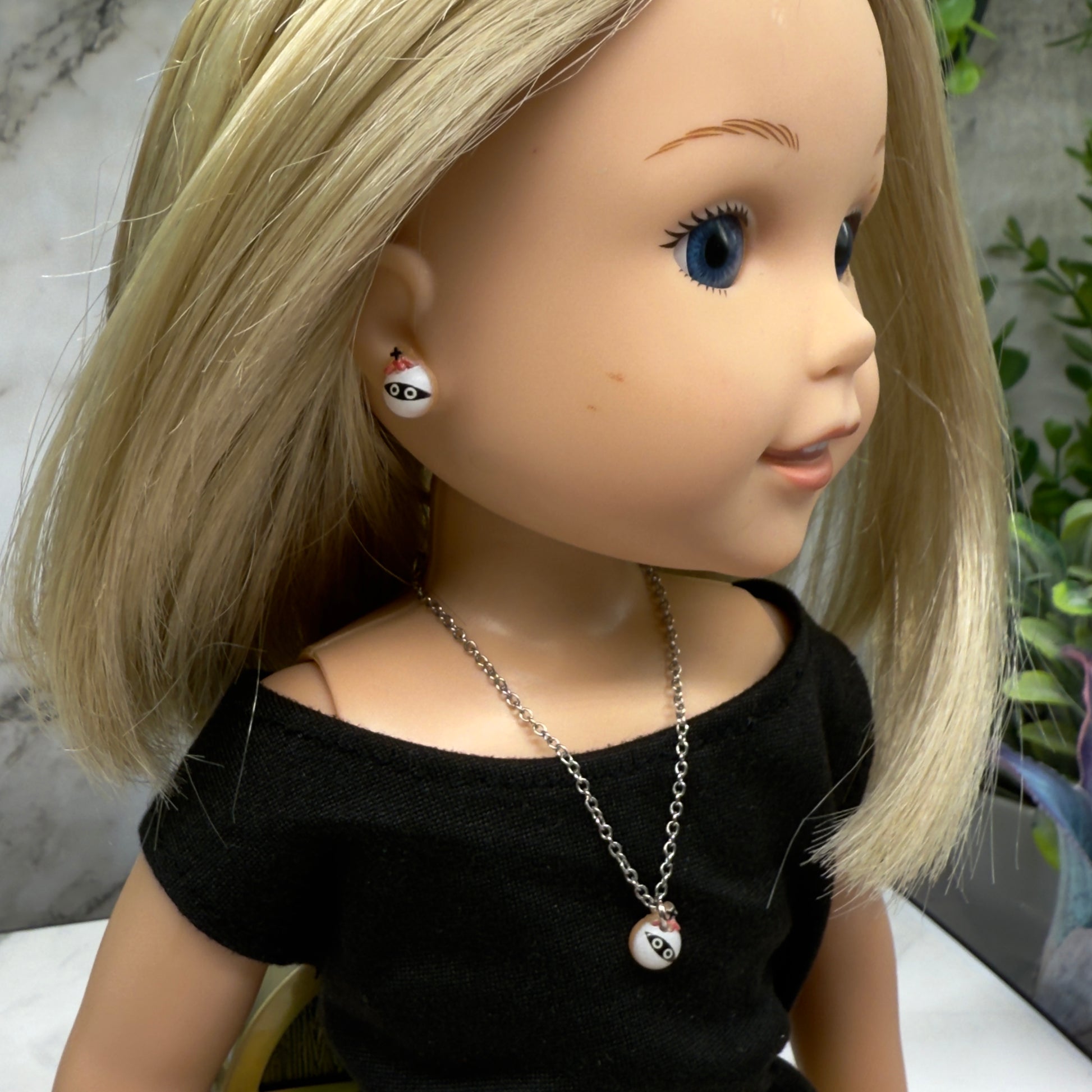 Halloween Mummy Charm Doll Necklace and Earrings Set • 14 Inch Doll Jewelry