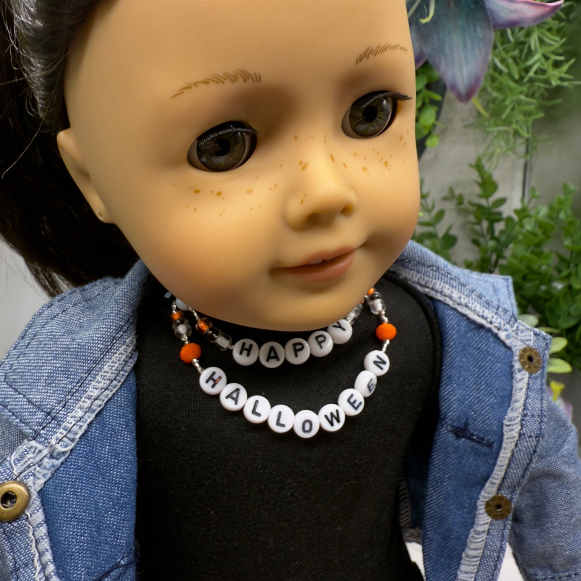 Happy Halloween Acrylic Beaded Silver Doll Necklace • 18 Inch Fashion Doll Jewelry
