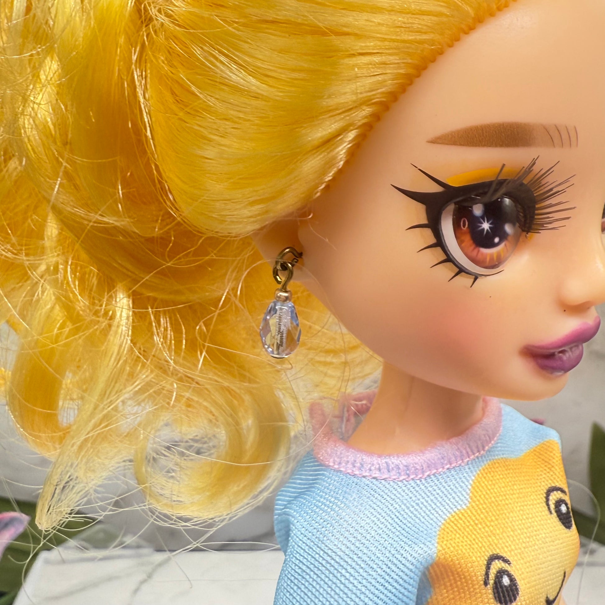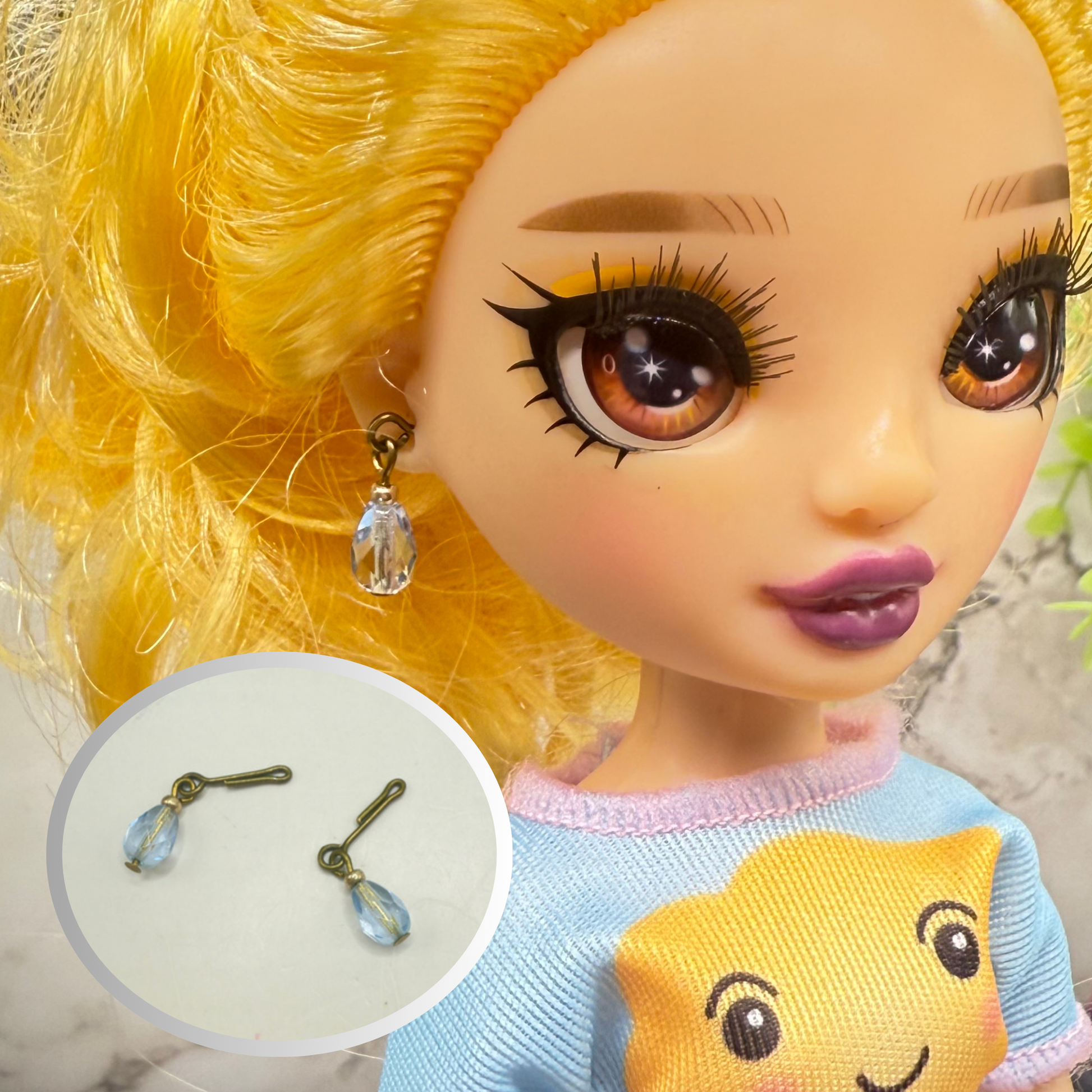 Light Blue Glass Crystal Dangle Earrings • 10-12 Inch Fashion Doll Jewelry 1:6