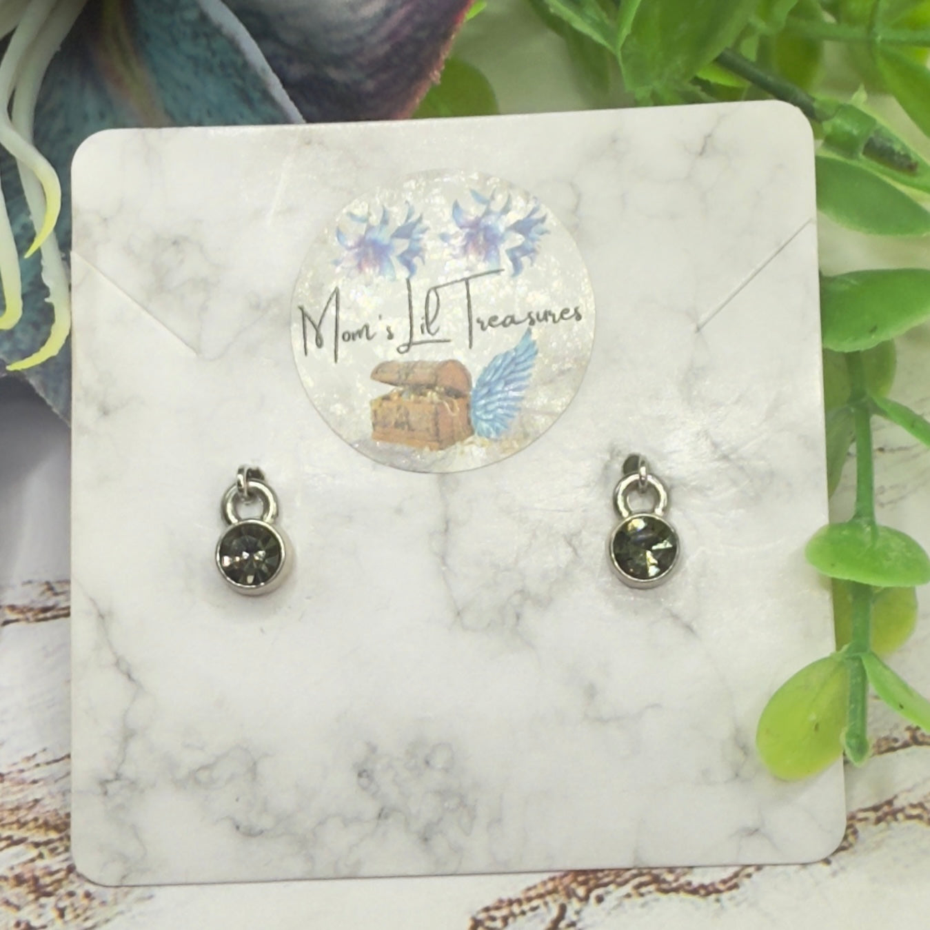 Olive Green Rhinestone Round Silver Dangle Doll Earrings • 14 Inch Fashion Doll Jewelry