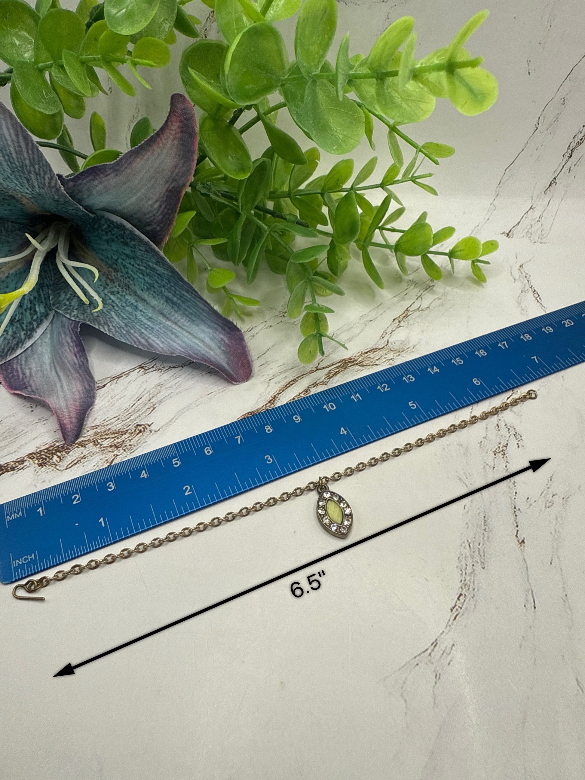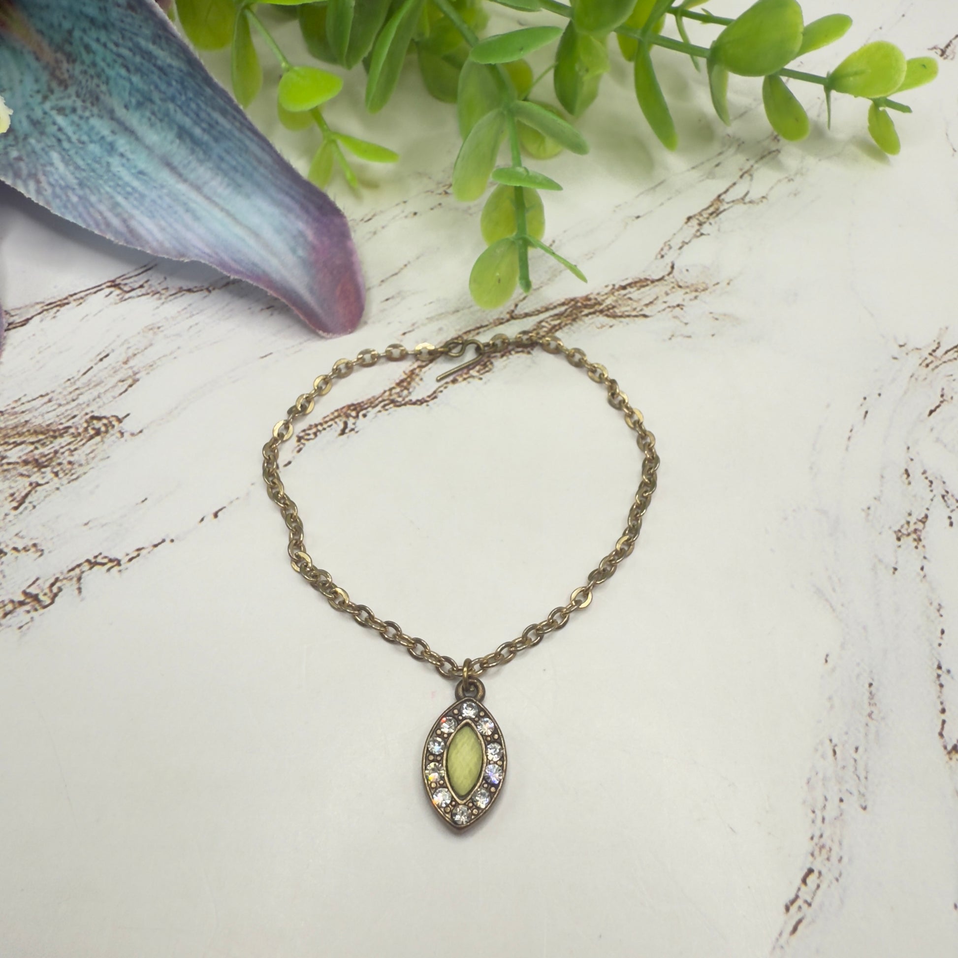 Oval Light Green & Clear Rhinestone Pendant Gold Chain Doll Necklace