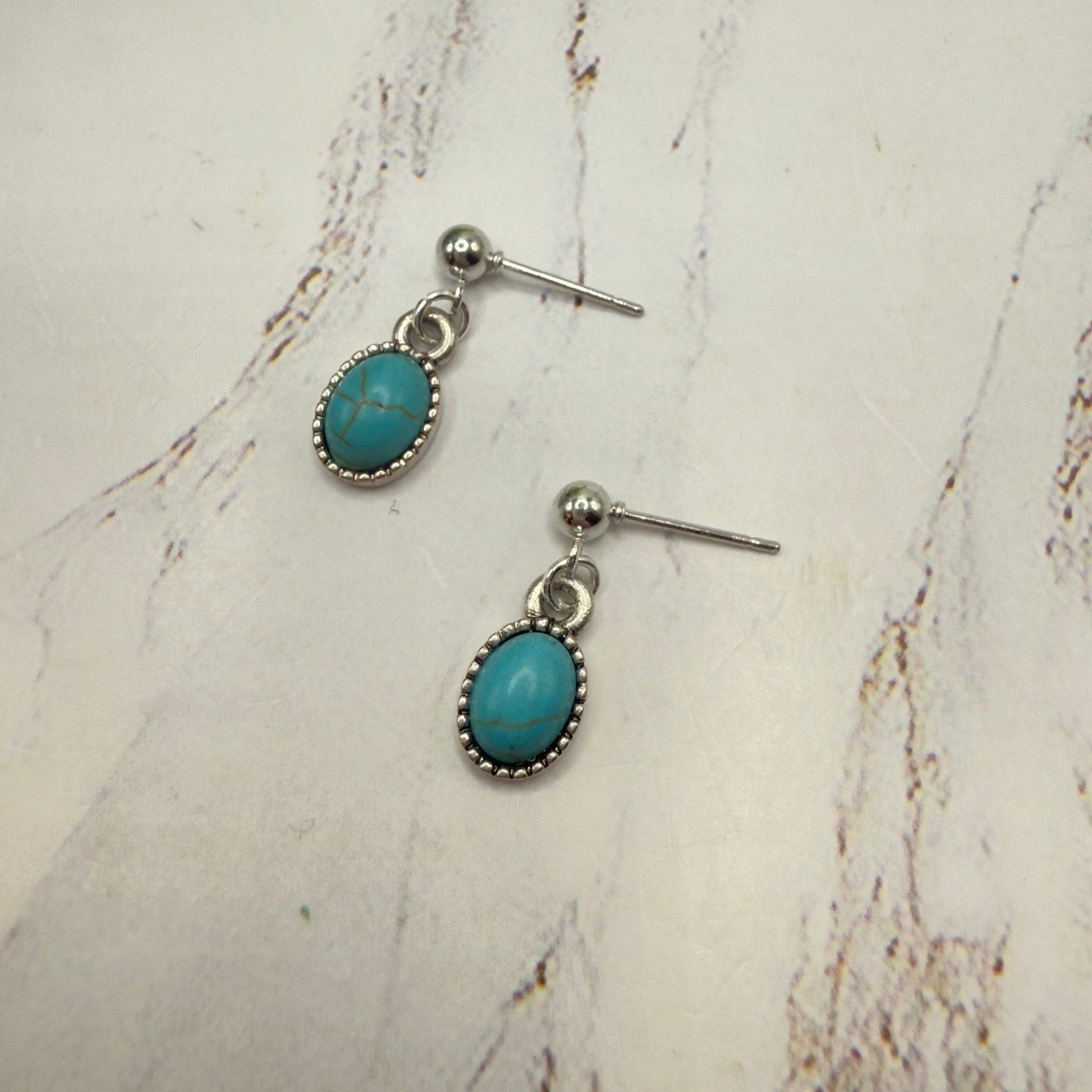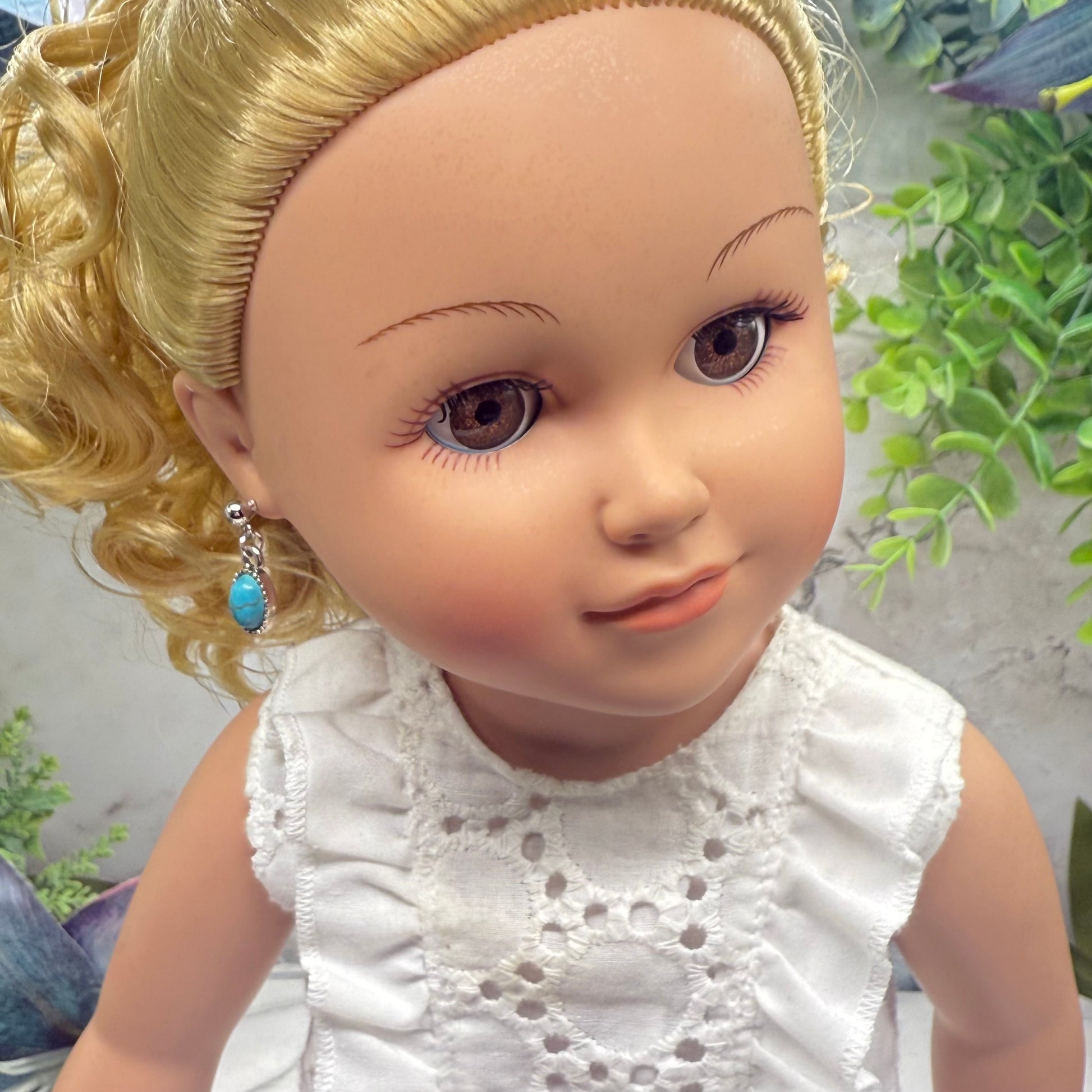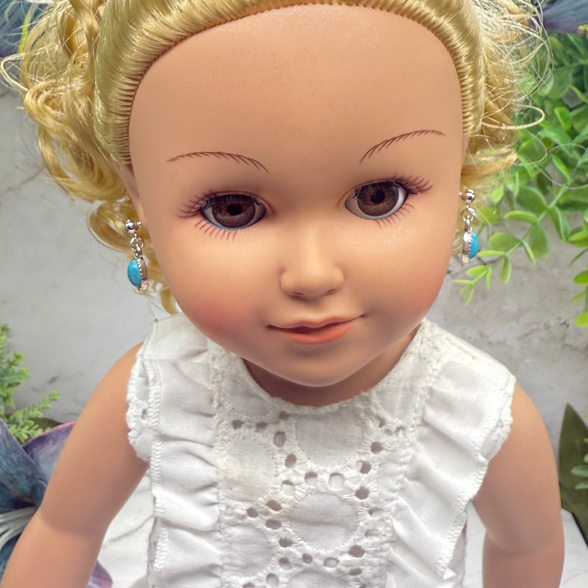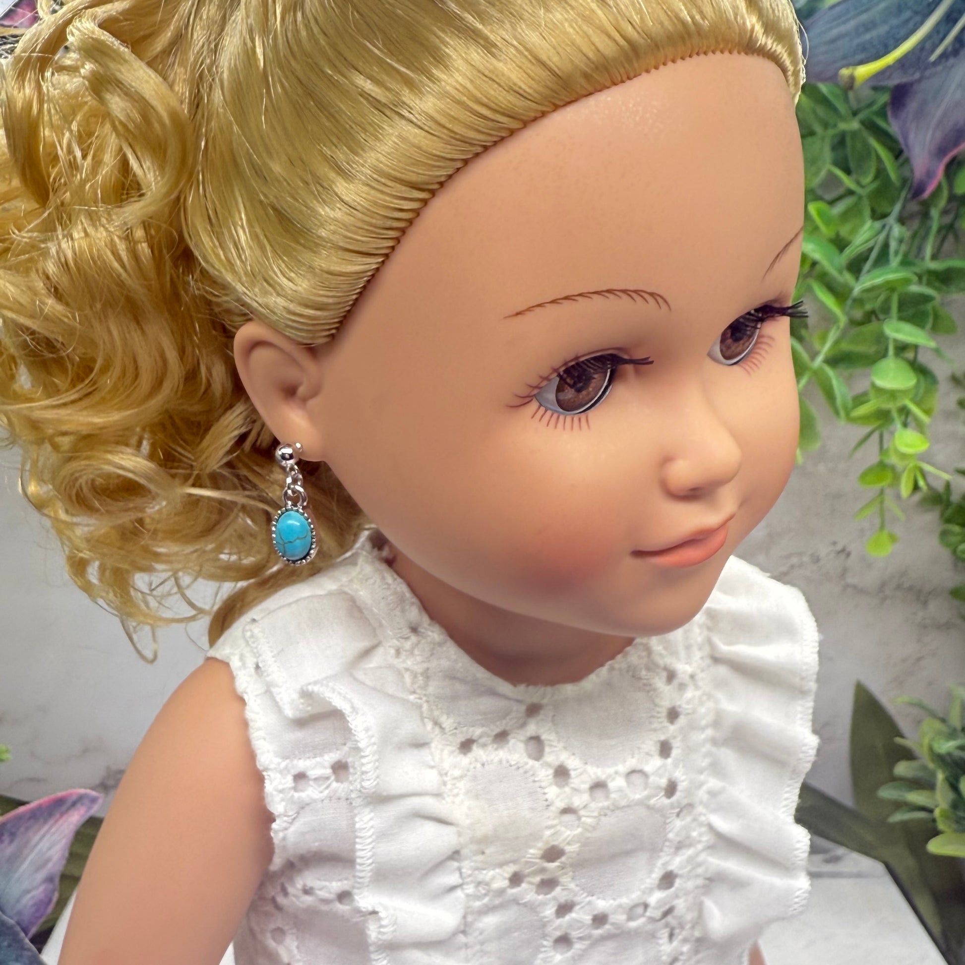 Oval Turquoise Dangle Silver Post Doll Earrings • 18 Inch Fashion Doll Jewelry