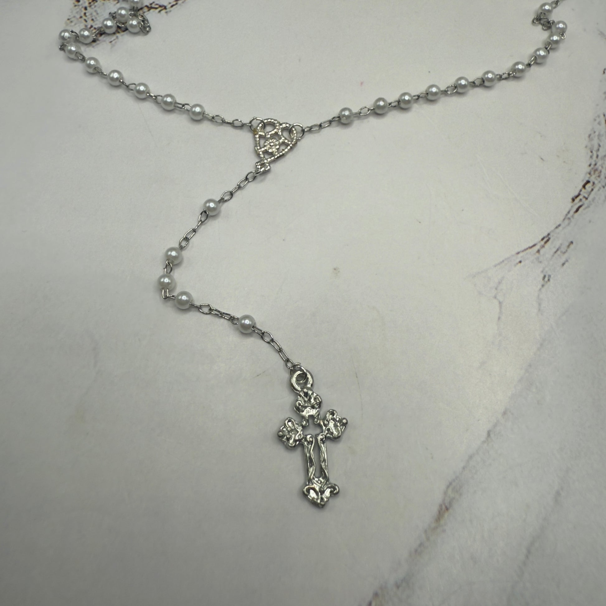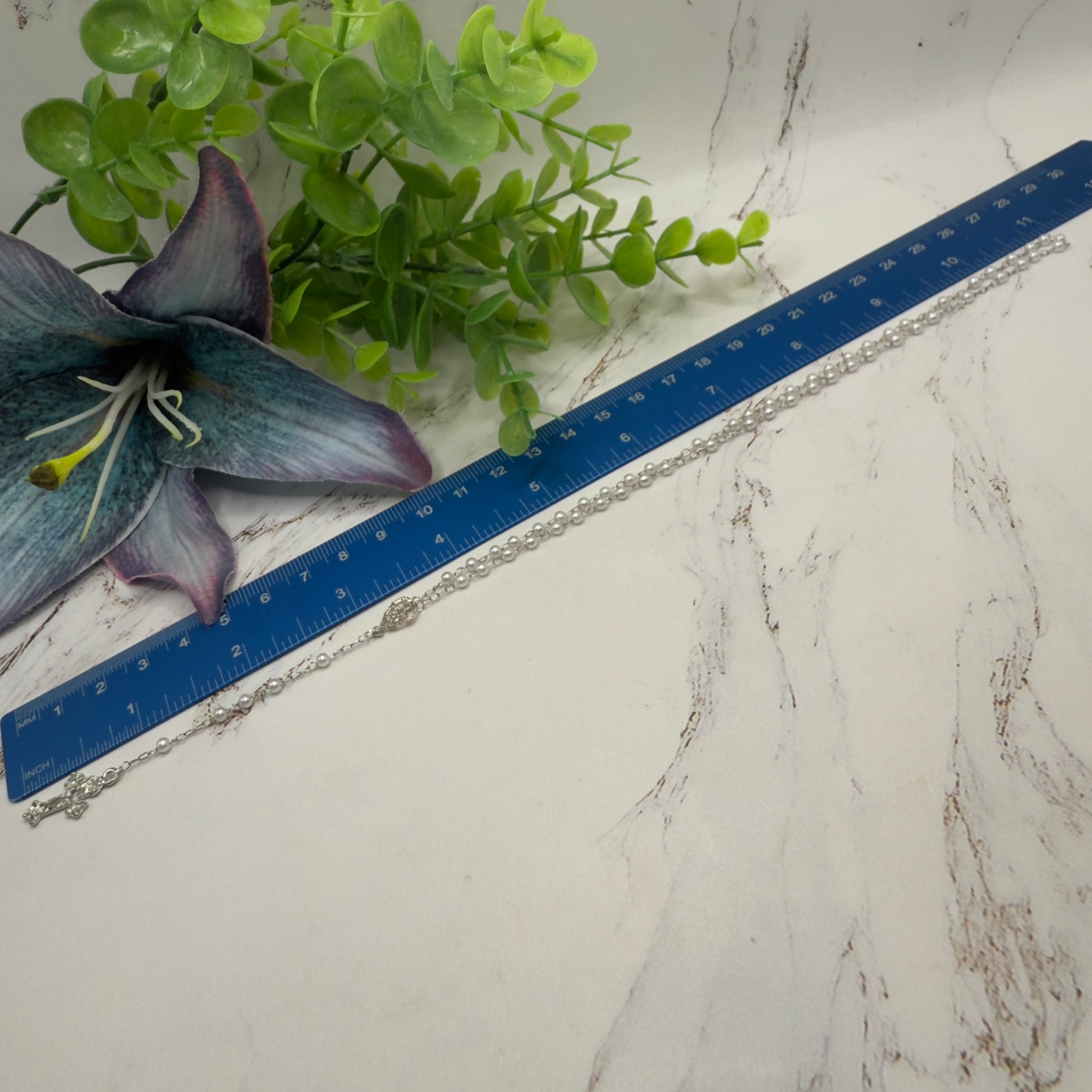Pearl Beaded Silver Cross • Doll Size Catholic Rosary