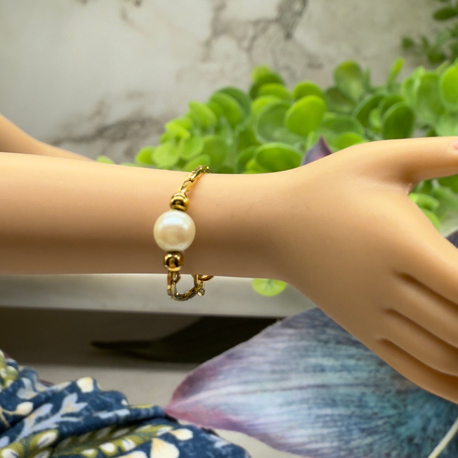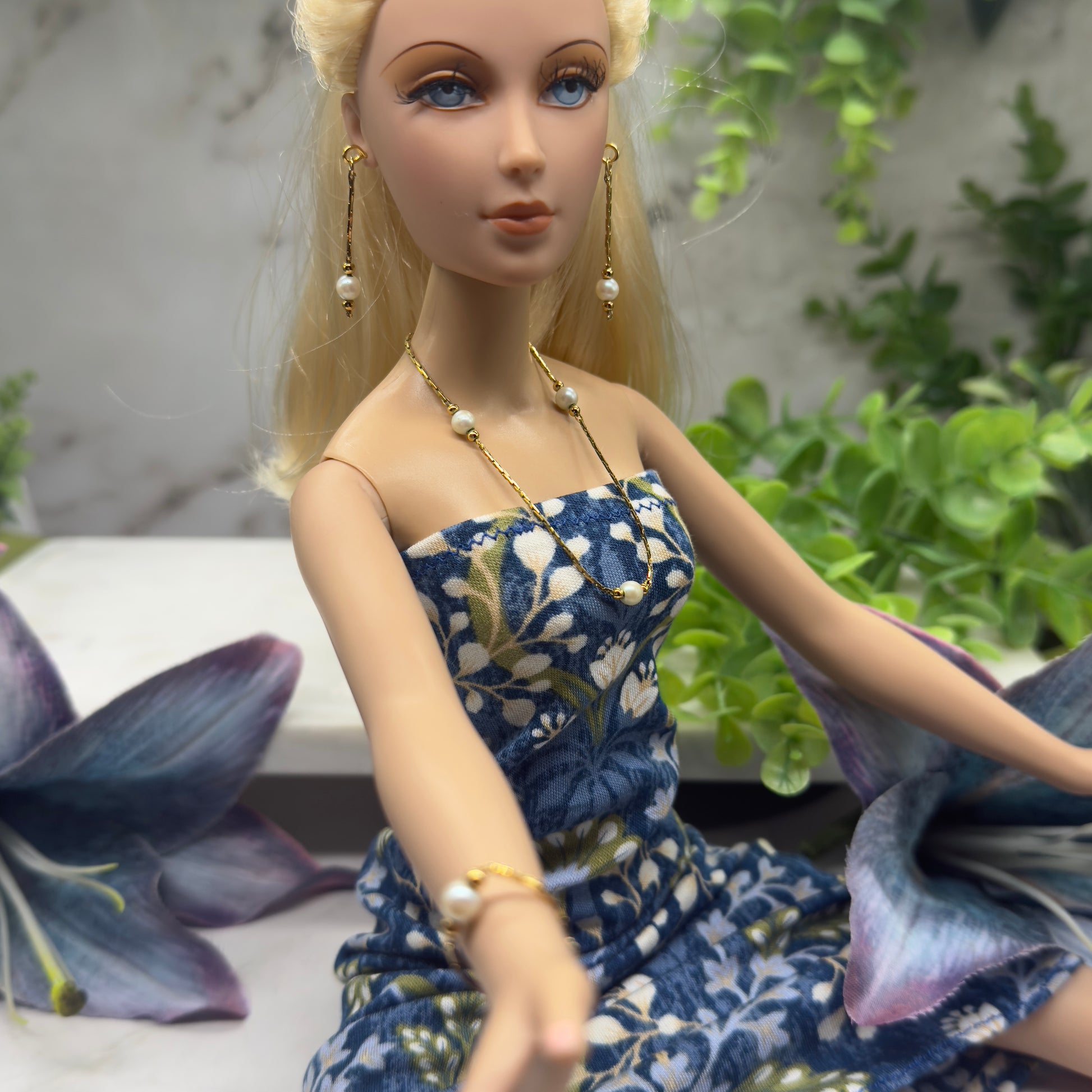 Pearl Gold Serpentine Chain Doll Necklace Earring Bracelet Set • 16 Inch Fashion Doll Jewelry