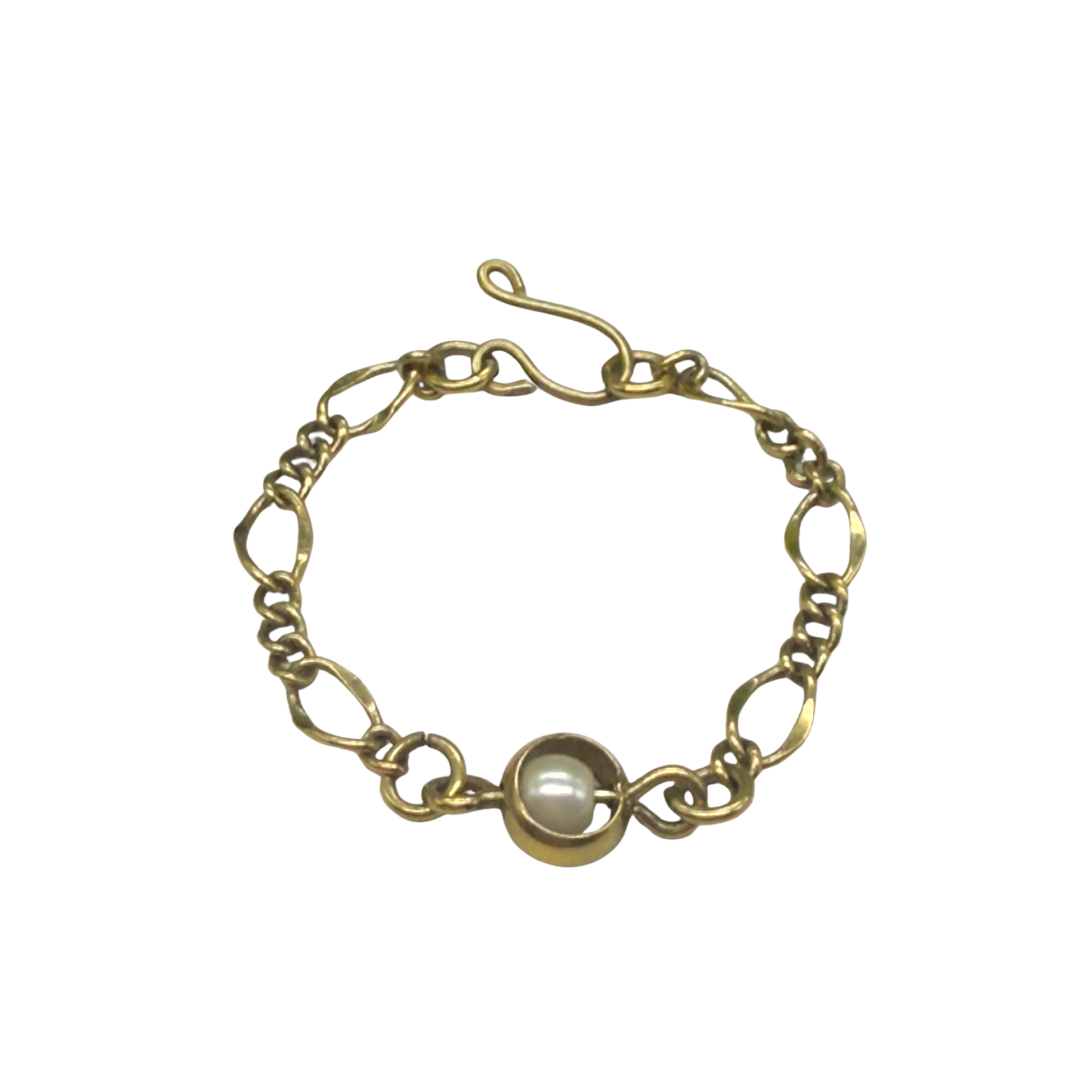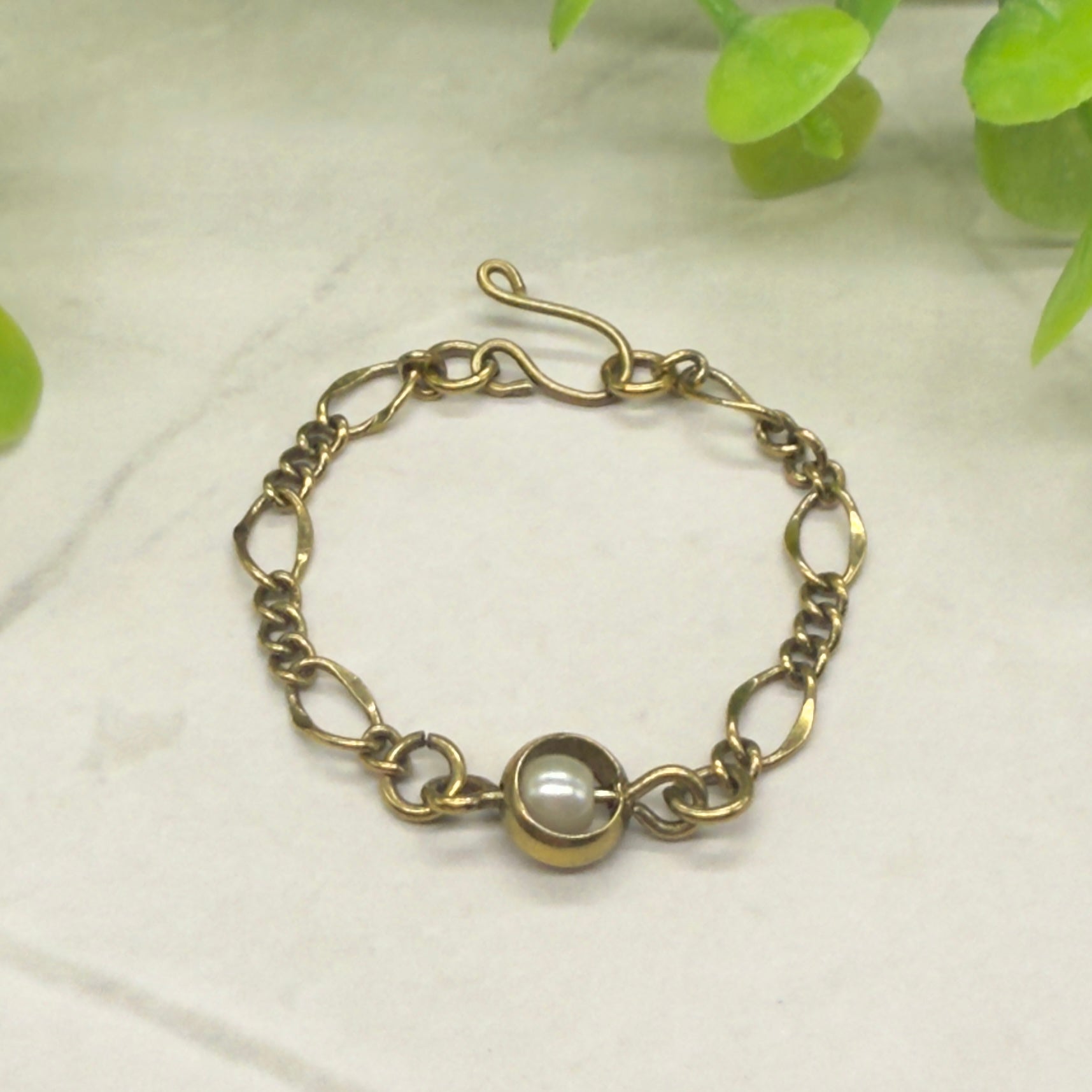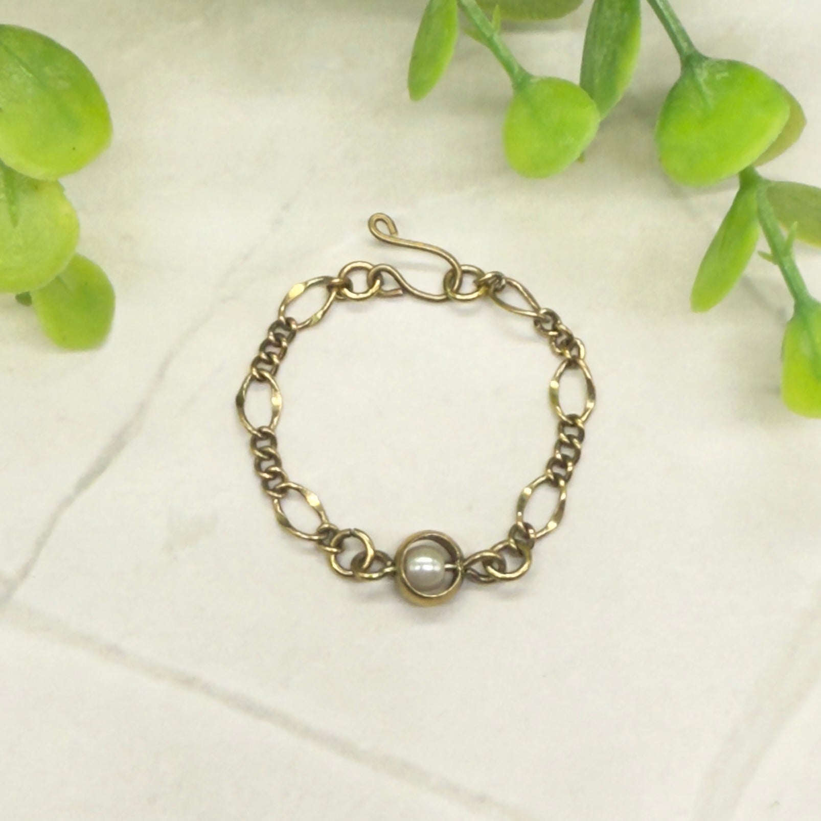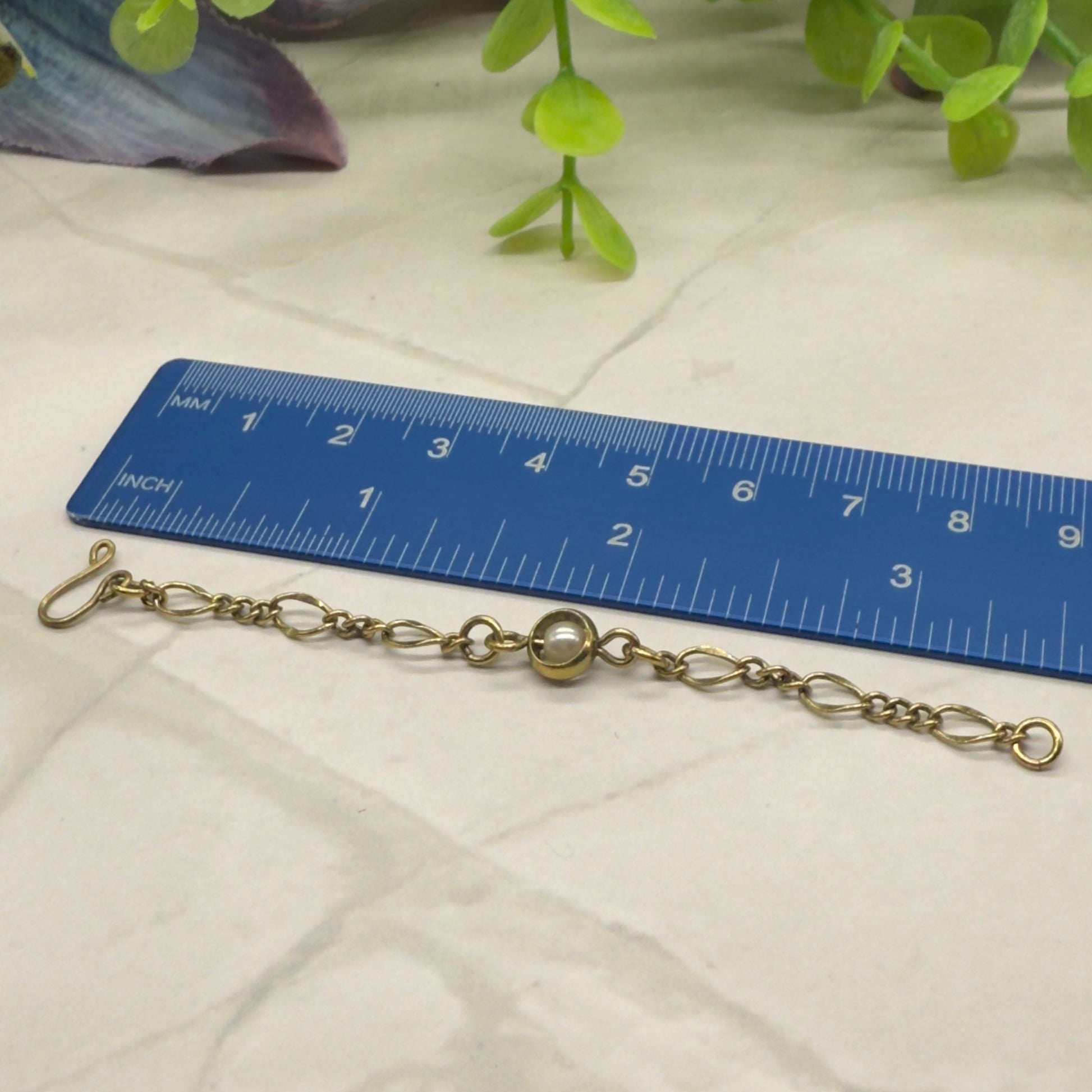 Pearl Accent Gold Large Link Chain Doll Necklace. The necklace is 3.25 inches long.