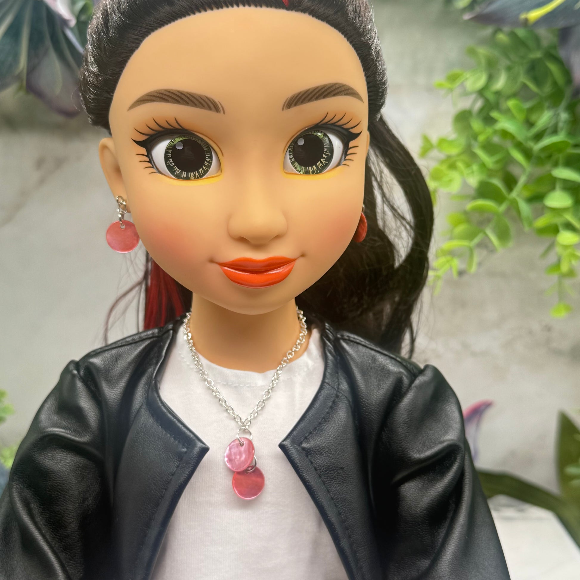 Pink Brown Round Dangle Doll Necklace & Earrings Set • 18 Inch Fashion Doll Jewelry