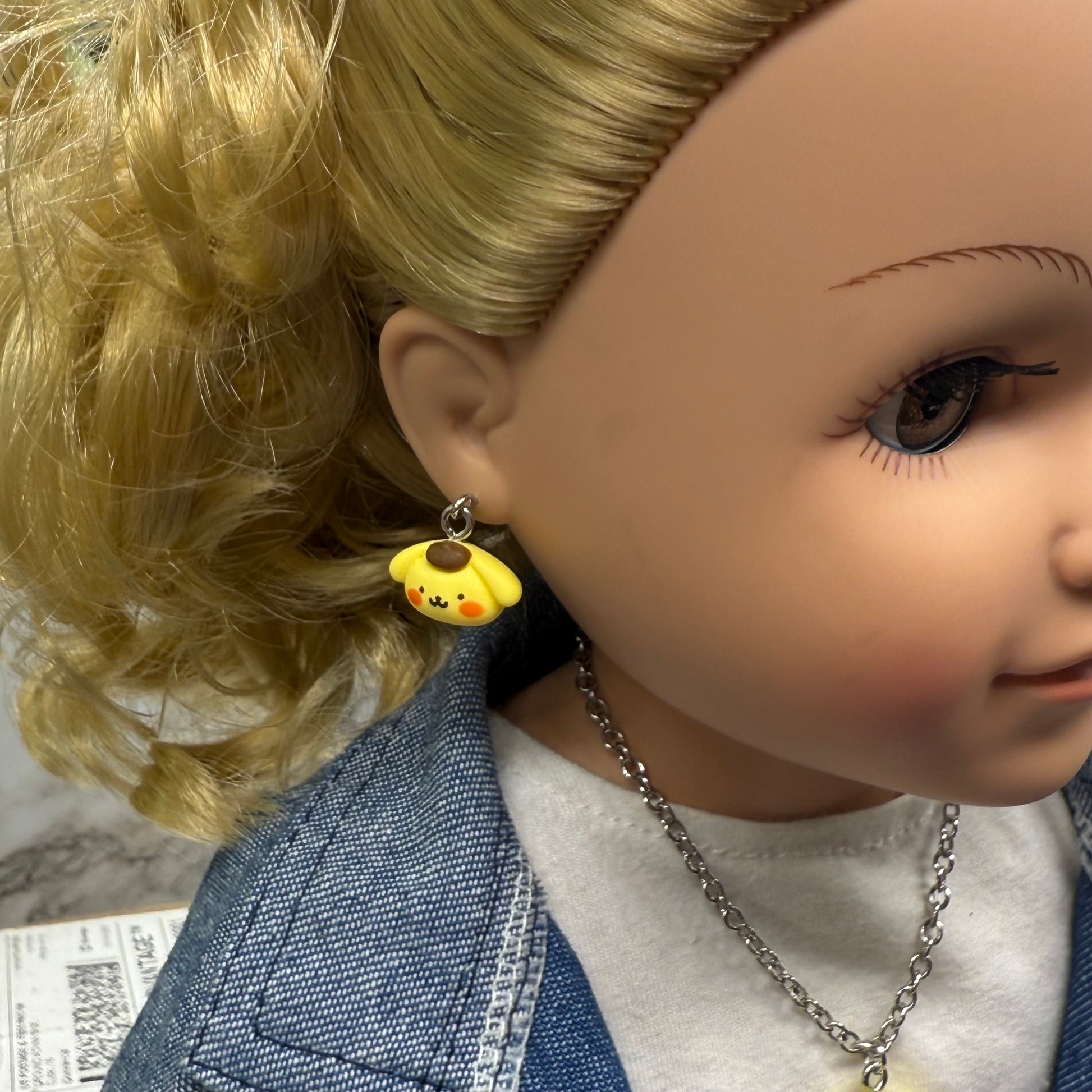 Pompompurin Sanrio Dog Charm Doll Necklace & Earrings Set • 18 Inch Fashion Doll Jewelry