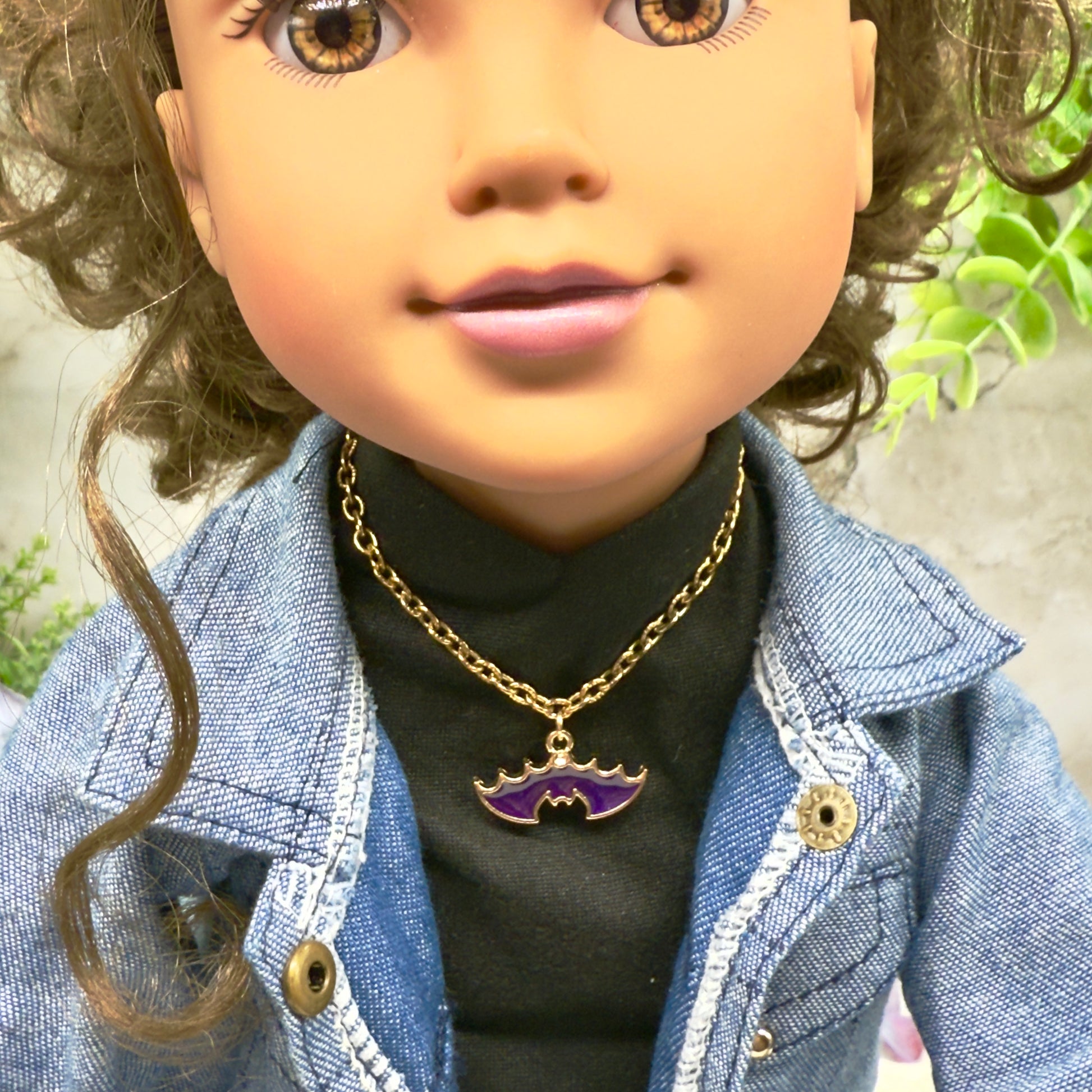 Purple Bat Charm Halloween Doll Necklace • 18 Inch Fashion Doll Jewelry