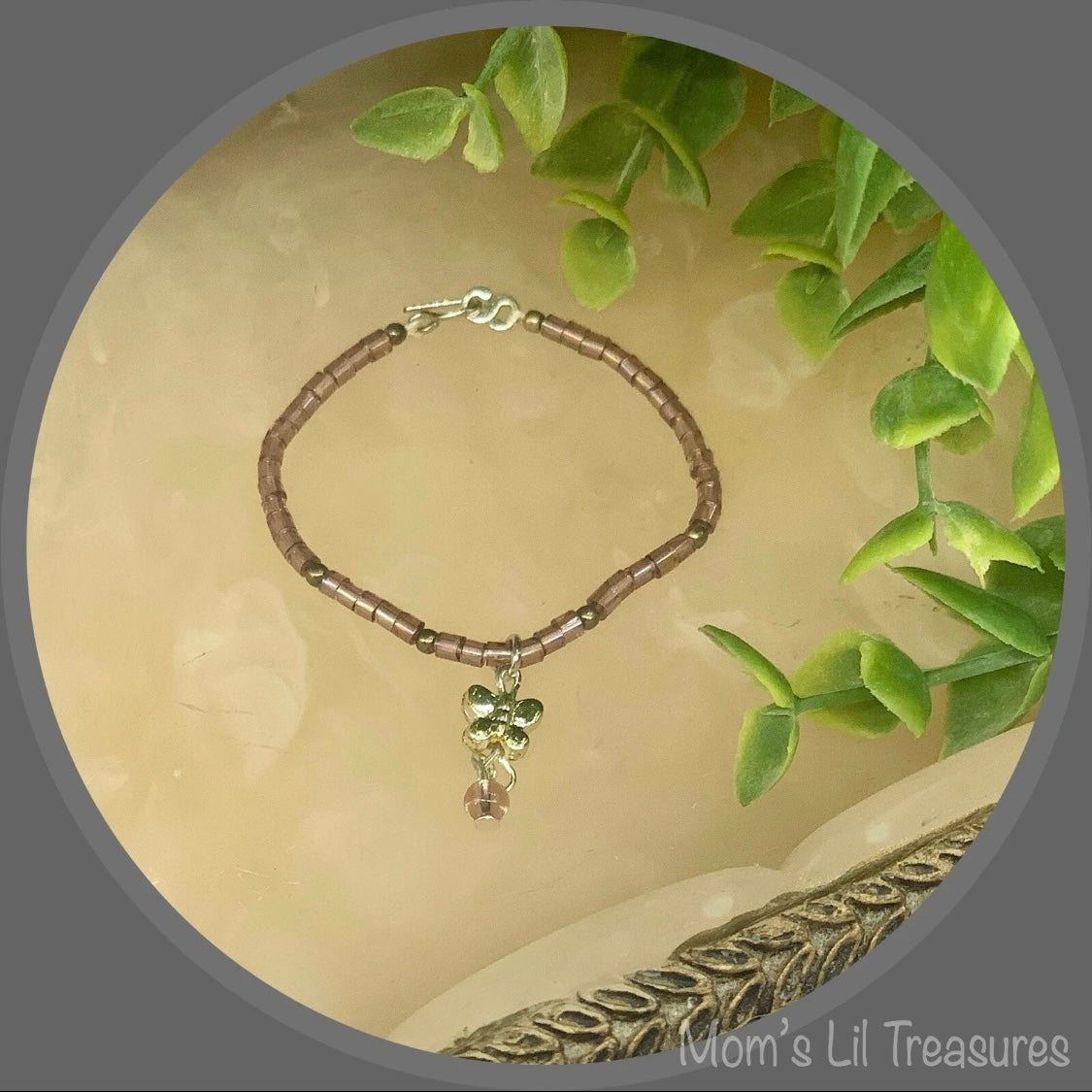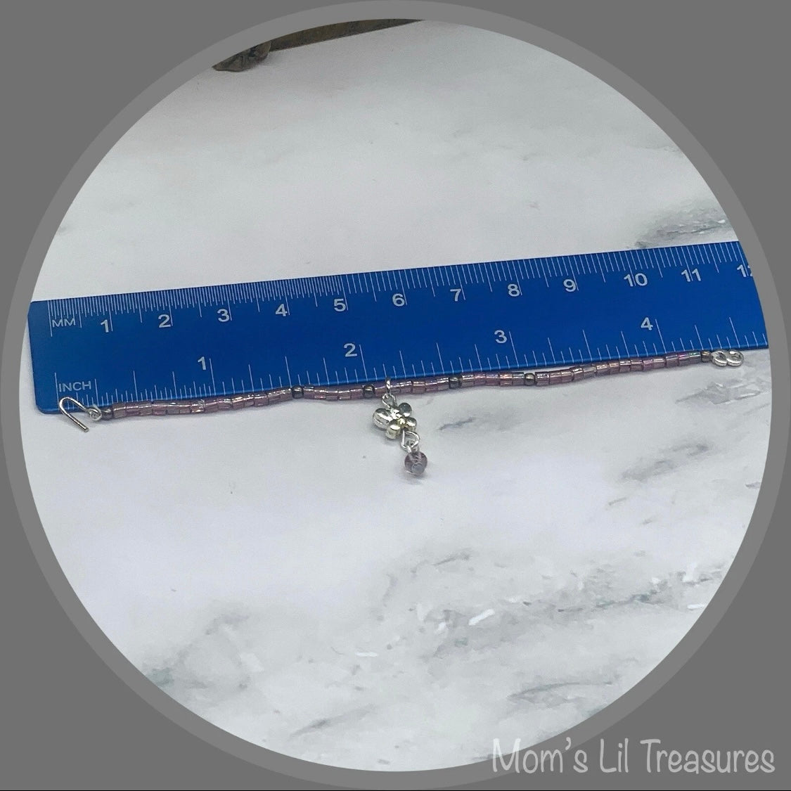Purple Glass Bead Silver Butterfly Charm Doll Necklace. Doll Necklace measures 4.5 inches long.