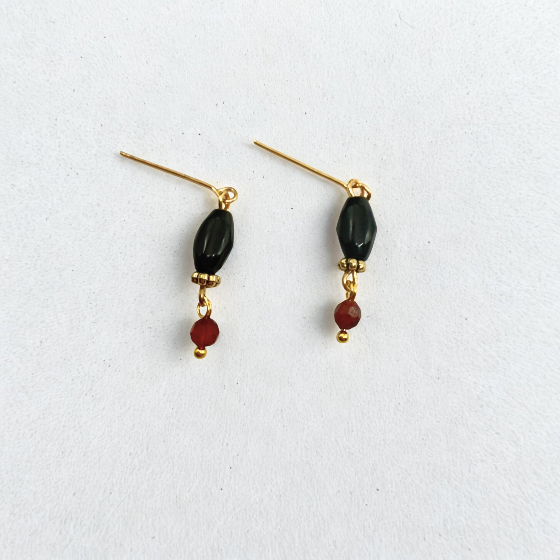 Red Black Beaded Dangle Doll Earrings