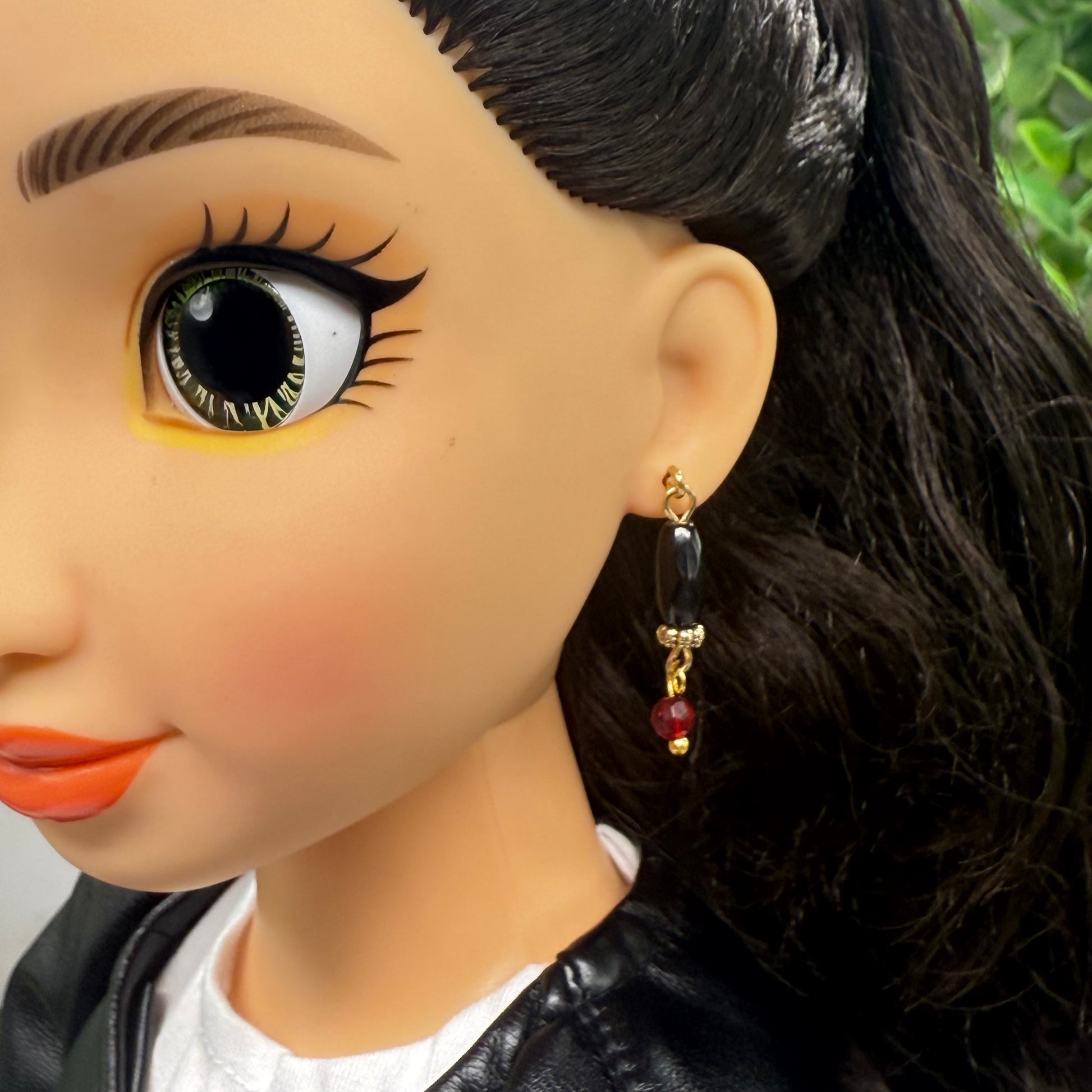 Red Black Beaded Dangle Doll Earrings • 18 Inch Fashion Doll Jewelry