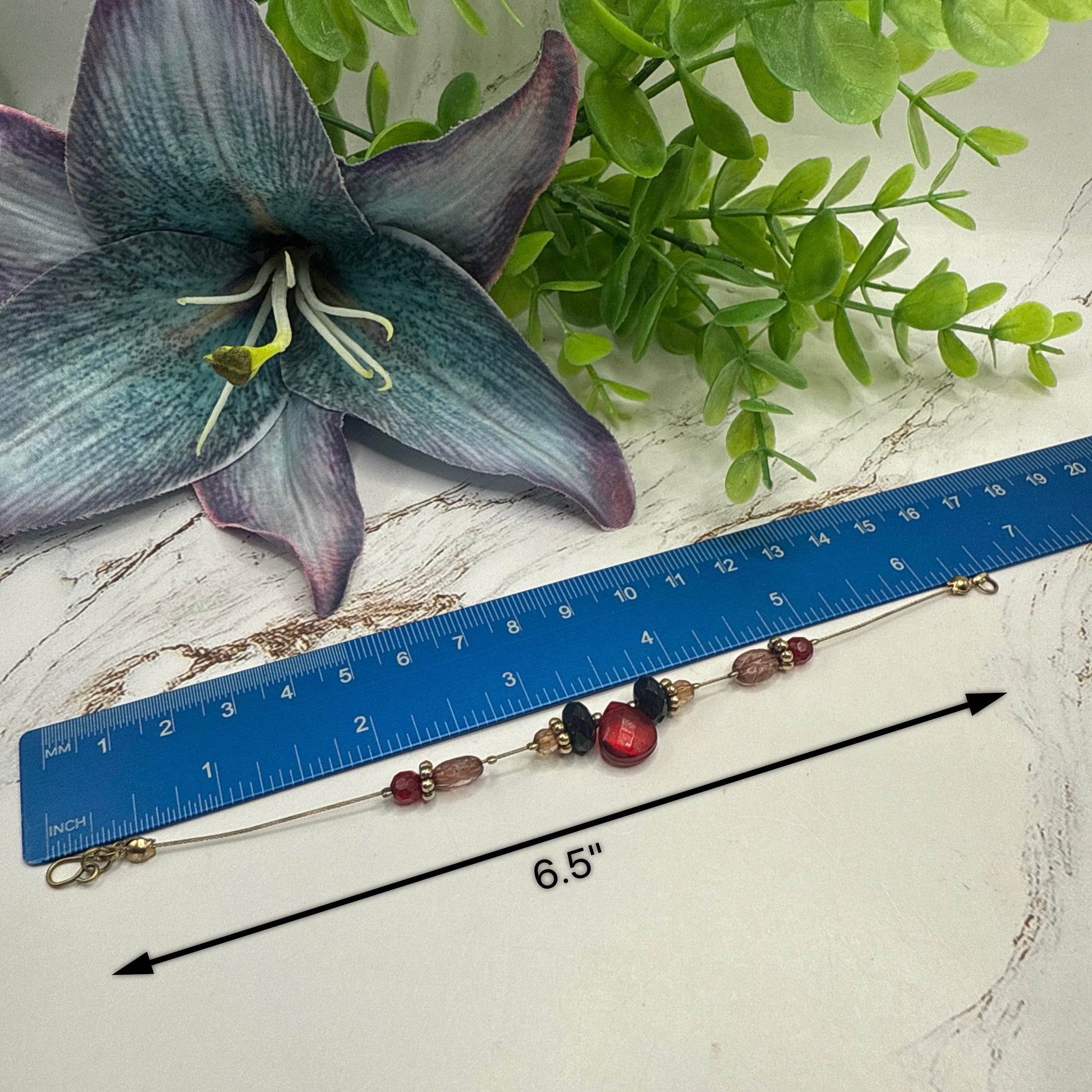 Red Black Brown Beaded Wire Strung Doll Necklace