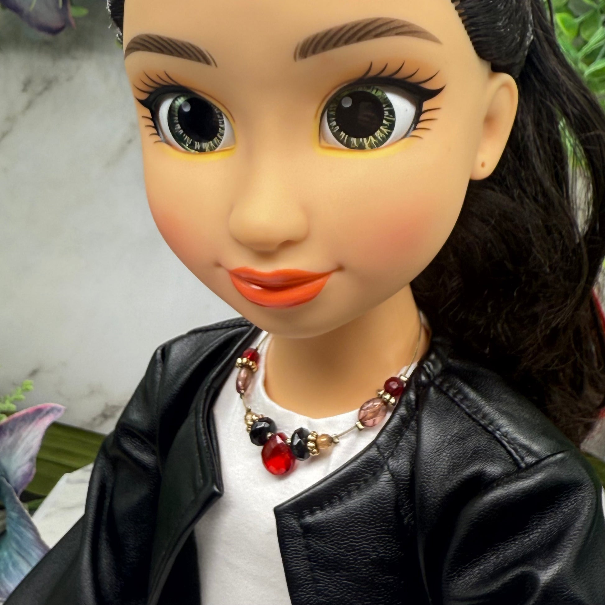 Red Black Multi Color Beaded Wire Strung Doll Necklace • 18 Inch Fashion Doll Jewelry