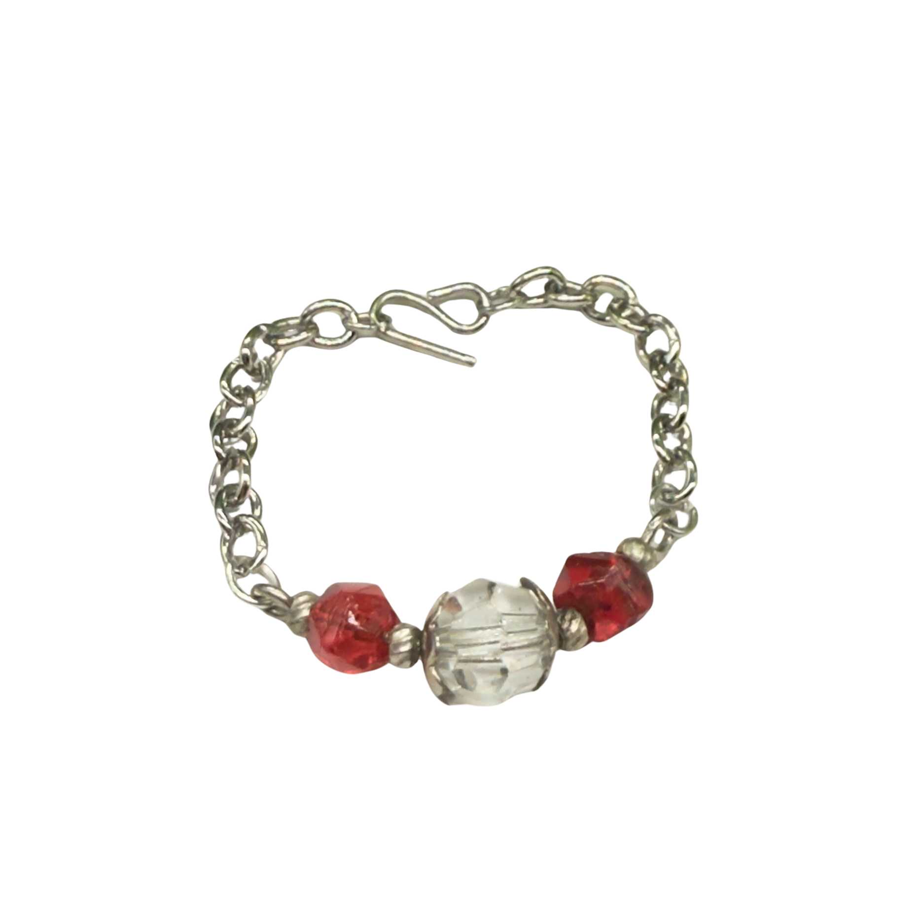 Red & Clear Glass Crystal Doll Necklace. Necklace measures 3 inches long.