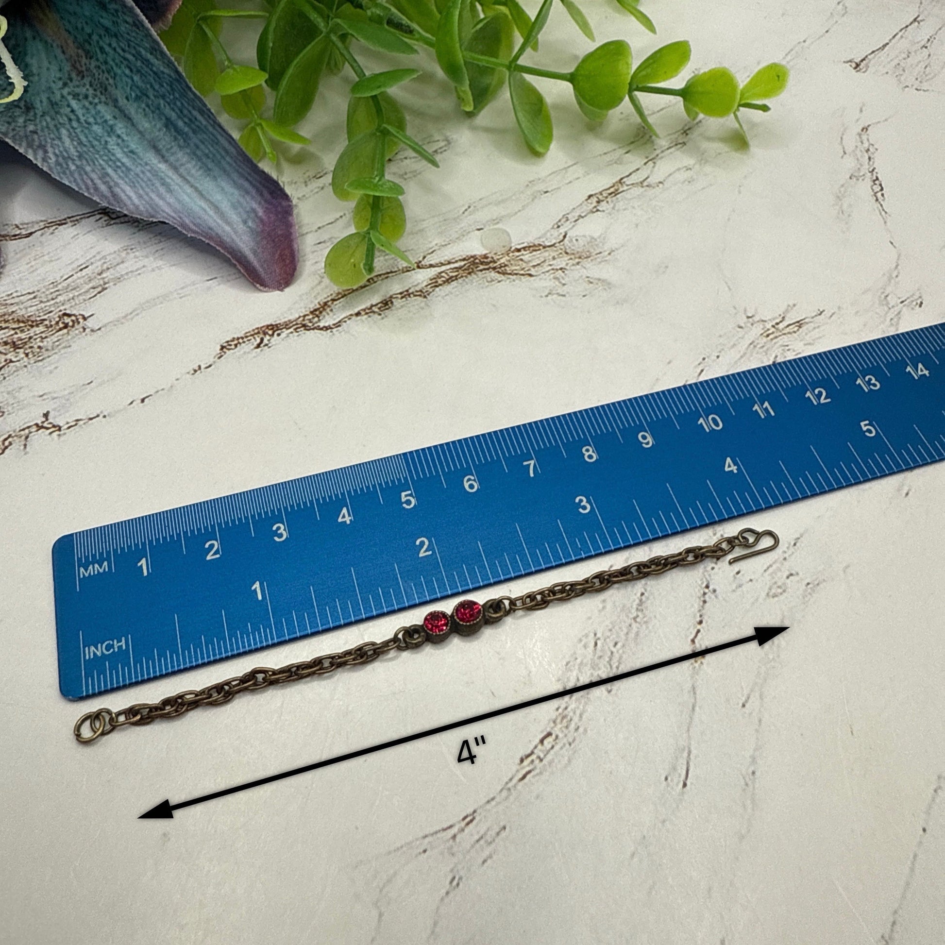 Dark Pink Red Rhinestone Bronze Copper Tone Chain Doll Necklace • 16 Inch Fashion Doll Jewelry